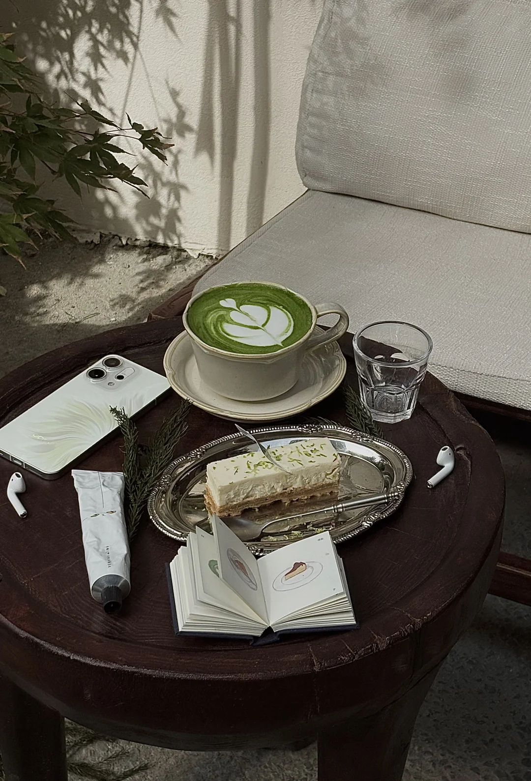 点了一杯抹茶拿铁☕️和一个芝士蛋糕🍰