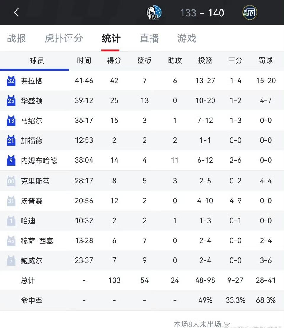弗拉格今天拿下42分证明自己,独行侠肯定会培养他,未来湖人可以观察了! 我总感觉他要是牛逼,几年以后湖人会下手,这个状元签来得莫名其妙,都说是湖人在背后下棋。 那么请独行侠好好培养弗拉格。[灵光一闪]