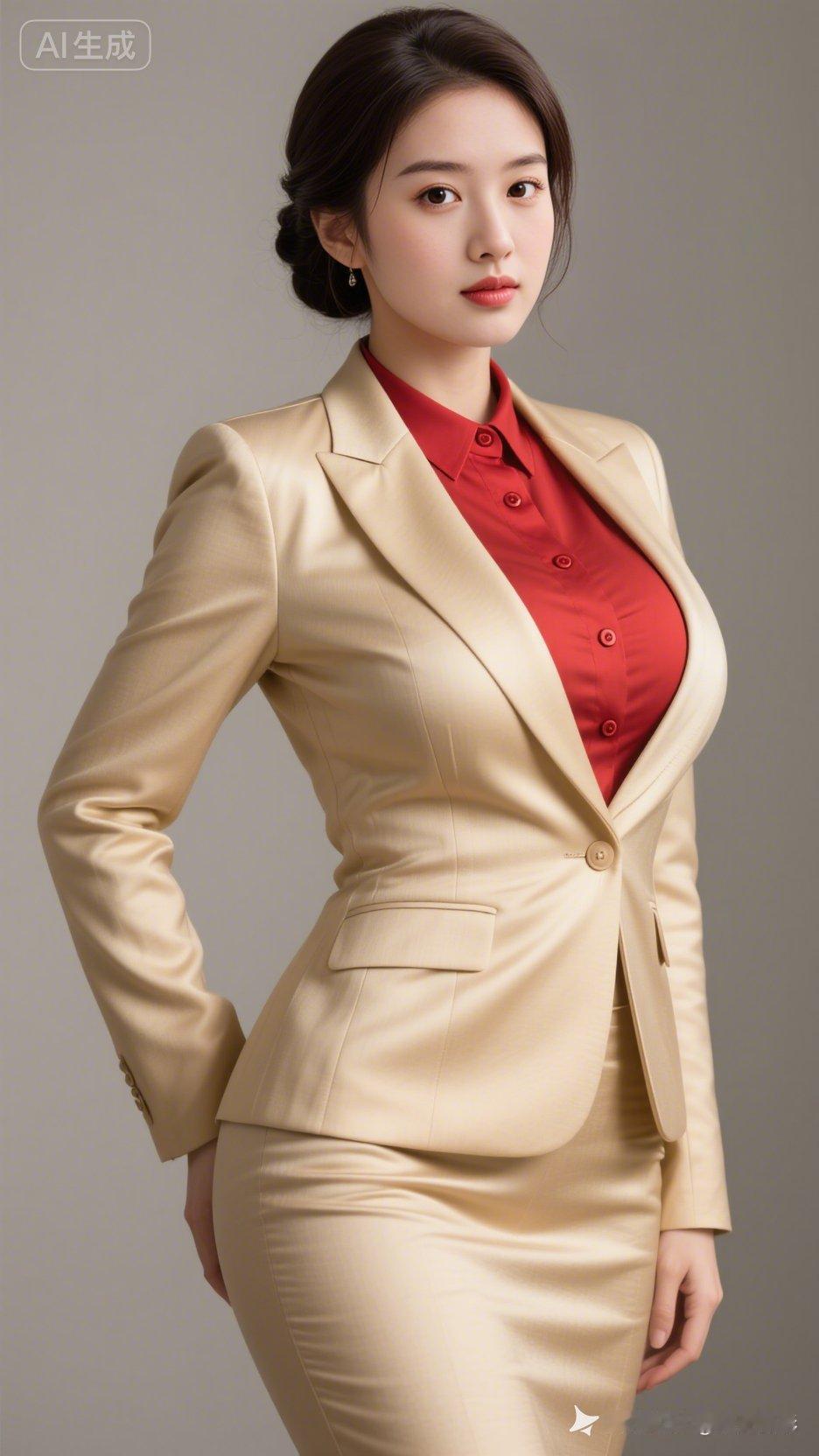 优雅职场风,米色西装搭配红色衬衫,自信满满!💼✨