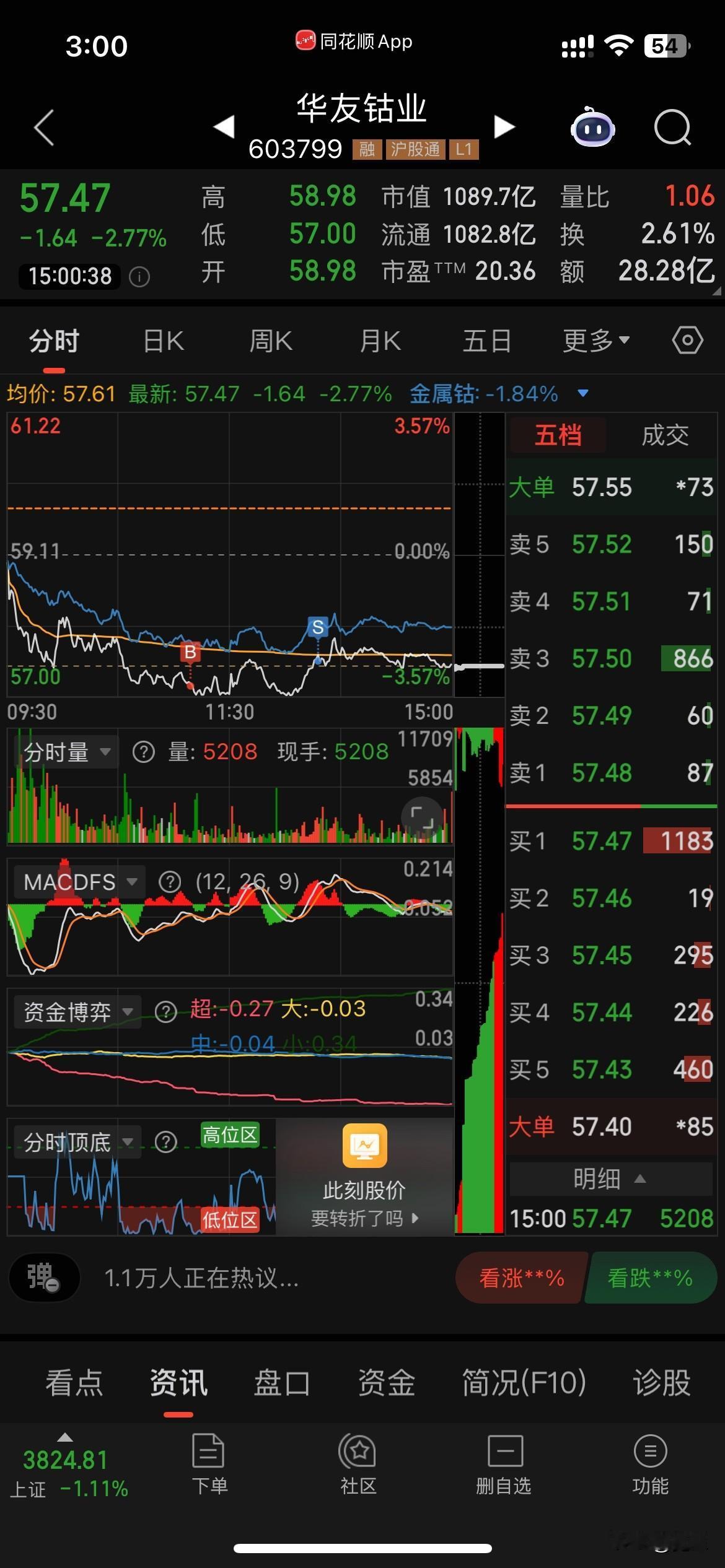下午大盘横盘震荡,没什么像样的反弹行情,也没有再次出现下跌。为了控制仓位,我找准机会成功做T,卖了早盘买入的华友和宙邦。大盘尾盘没有出现放量反弹迹象,所以尾盘没有再买股。收盘账户绿了3百多,大盘跌这么多的情况下还算可以。今天跌不多少主要是重仓股盈峰没有跌,加上做了两个股票的T。 低位买的金盘下午也没有跌。明天我估计大幅反弹可能性不大,主要受日本18号讨论加息和美股看空科技两个因素影响。本月继续谨慎操作,争取保持红盘结束今年行情。