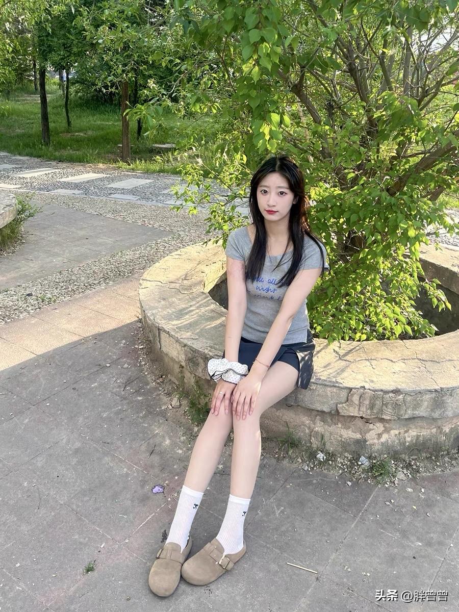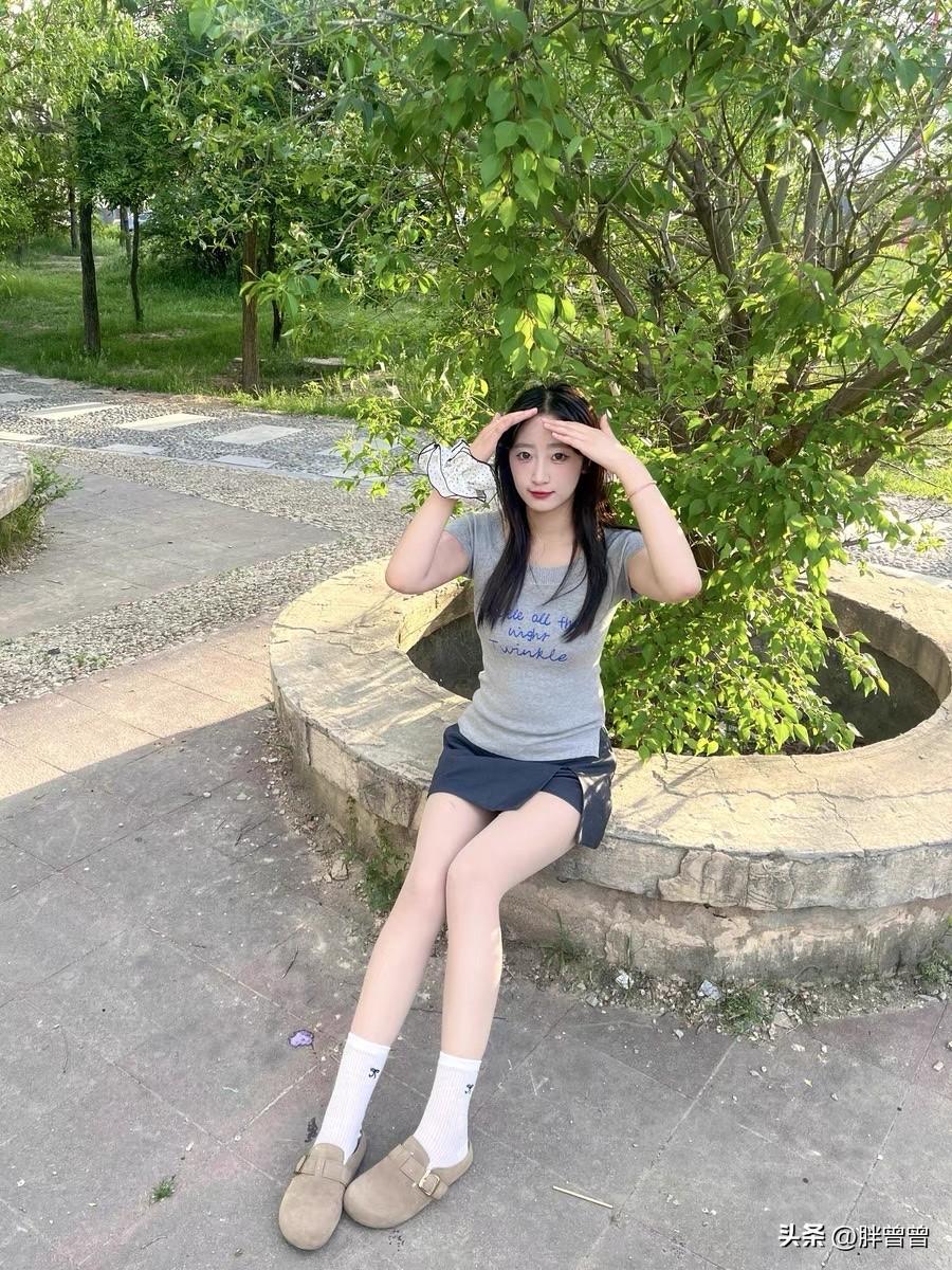 夏日清新穿搭,绿意盎然公园里,少女与自然相伴