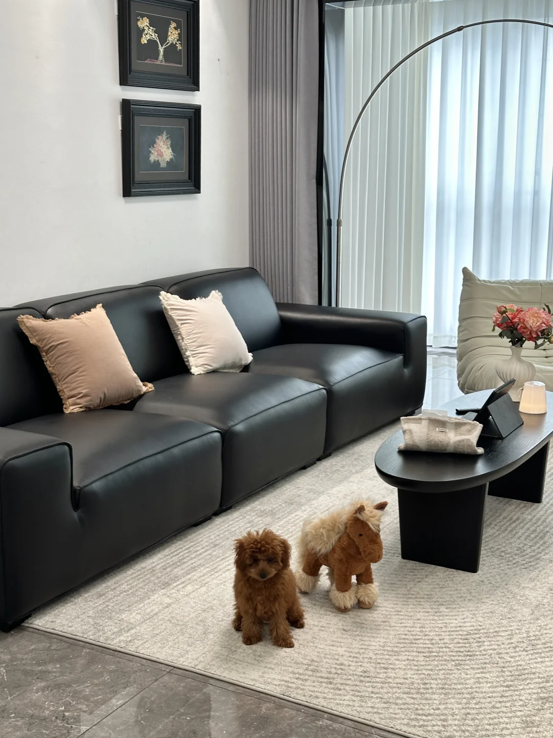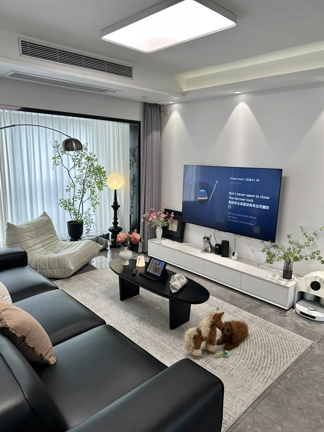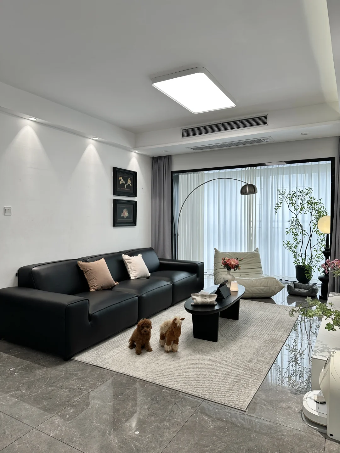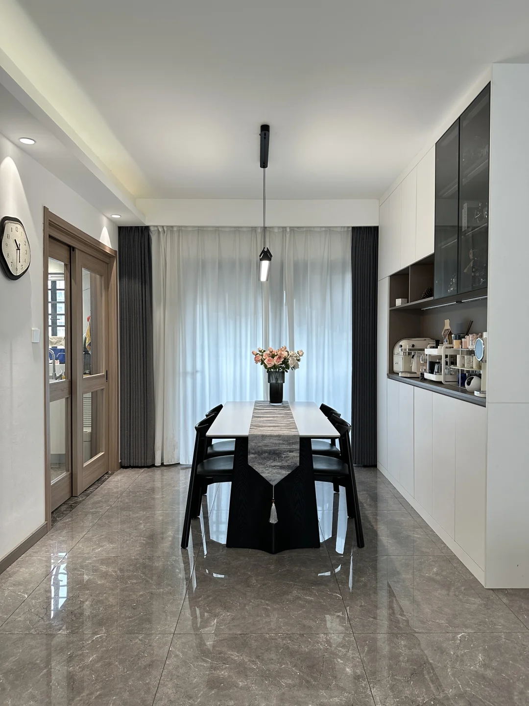 120平精装,套内只有90平 从没想过,软装搭配后的家,在小区出名了 硬装没做太大的改动,封窗后就软装凑了~ 客餐厅一体,双阳台户型 南北对流采光和通风都是很好的 不改瓷砖颜色,搭配成教学的黑白灰风格 虽然谈不上高级感,但是搭配后还是很满意的 客厅没有复杂的背景墙,大白墙也很百搭 餐厅做了一个收纳为主的满墙餐边柜 放下了1.6米餐桌,餐厅灯搭配了棱镜吊灯 开灯后的温馨氛围感扑面而来 房子虽然不大,却装下了我满满的❤️ 日子要平淡,但是不要将就!