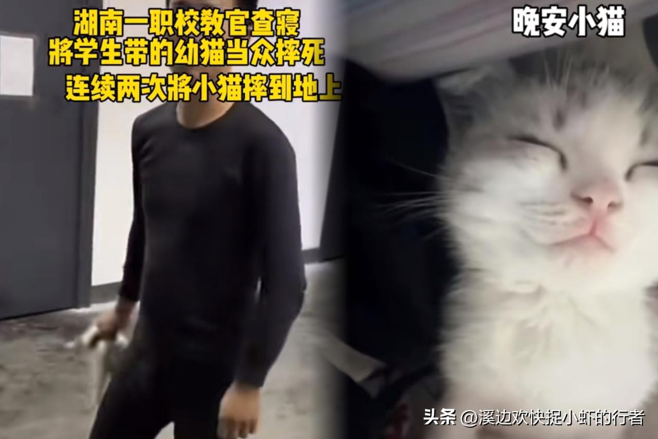 不让养可以放生啊!不喜欢请不要伤害[祈祷][祈祷][祈祷]职校教官活活摔死学生的猫,还甩锅“学生同意”? 12月15日晚,湖南湘西为民职校的一则视频让全网怒了!查寝教官发现学生违规带幼猫进宿舍,明明学生已经协商好次日交给班主任处理,教官却情绪失控,脱了衣服鞋子两次重摔小猫,不到一分钟就把它摔死了,事后还嘴硬说“是猫主人同意的”! 真的越看越气!学生私带宠物违反校规,该罚就罚,批评教育、记过都行,可拿无辜的小生命撒气算什么?那可是出生才几个月的幼猫,没招谁没惹谁,就因为躲了下床底,就遭这么残忍的对待。 作为教官本该是学生的榜样,教的是规则和善良,结果却用最暴力的方式示范“恃强凌弱”。更离谱的是还撒谎甩锅,学生明明全程阻拦,怎么就成了“同意摔死”?猫是学生的私人财产,这么做不仅违背公序良俗,还可能涉嫌寻衅滋事。 现在湘西教体局已经介入调查,说属实会严肃处理。但大家最关心的是,这样没有同理心、情绪失控的人,怎么能当校园管理者?教育的底线是尊重生命,连小动物都容不下,还怎么教育学生? 学生有错在先,但绝不是教官施暴的理由。希望调查别走过场,不仅要处罚涉事人员,学校也得好好反思:校规是为了守护秩序,不是给暴力当挡箭牌。 你们觉得该怎么处理这位教官?评论区聊聊~ 湘西教官摔猫事件 尊重生命