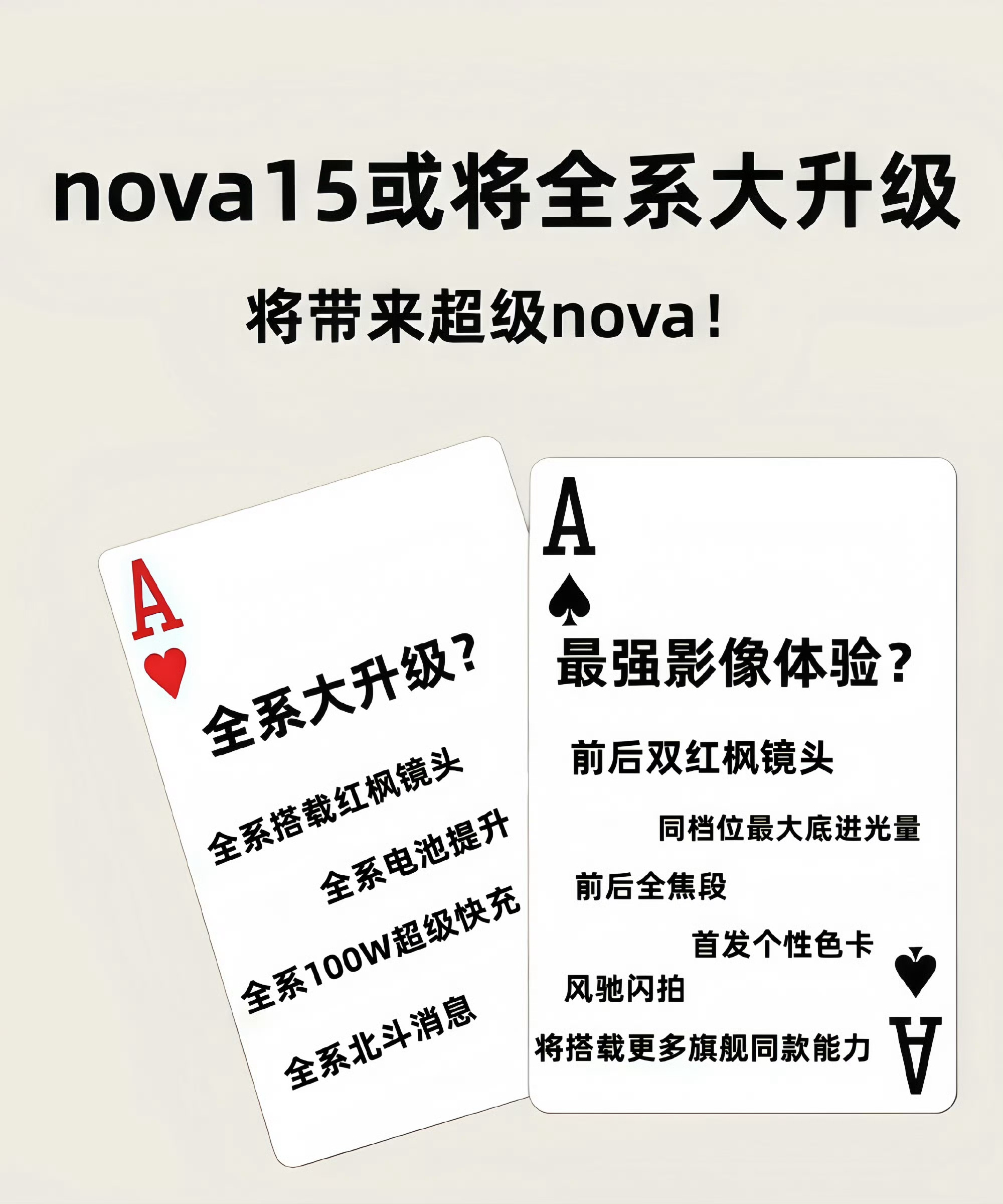 华为nova15或将搭载前后置双红枫华为nova15有望迎来全系大升级 爆料的几项升级都切中了当前用户的需求痛点。100W快充大幅缩短充电等待时间,电池容量增加带来更长续航,前后红枫镜头提升全场景拍摄质量。如果这些升级能与轻薄时尚的机身设计共存,那么nova 15很可能成为一款兼具实力与美感的产品。