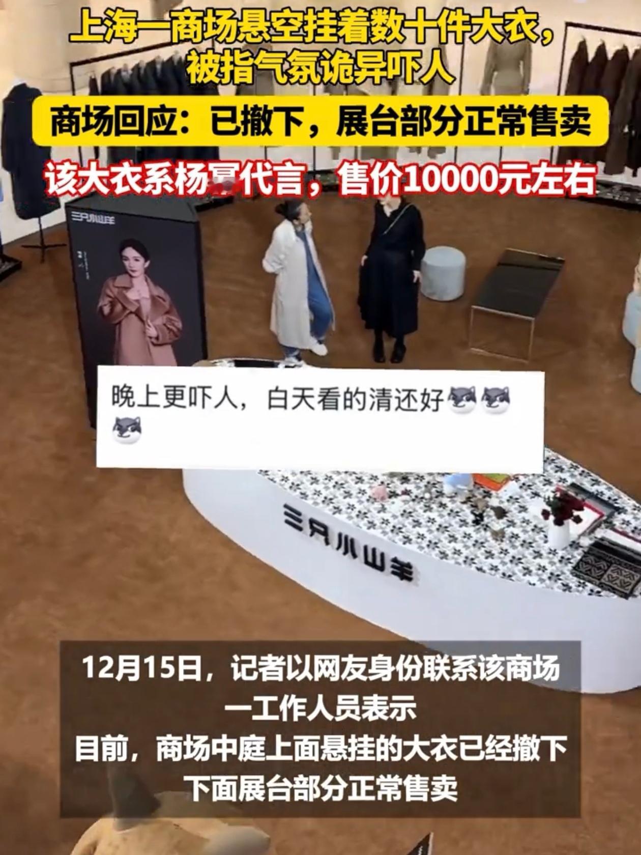 上海久光百货四楼挂了几十件大衣,错落悬空吊在中庭,远看跟吊着几十个人似的,顾客上去逛街直接被吓退了,网上骂声一片说这是商场还是鬼屋,商场说因为合同限制撤不了,拖到12月15号终于给拆了,网友说早该这样谁逛街是来练胆子的。 这事儿是三只小山羊品牌搞的开业宣传,他们在四楼开新店想整点创意吸引人,设计师脑子一热说咱把大衣吊起来展示,显得高级有艺术感,品牌方一听说行就这么办。 几十件大衣从天花板上垂下来,高高低低错落着挂,白的黑的灰的各种颜色都有,设计师觉得挺美的拍了照发朋友圈,顾客第一次看见这场景腿都软了,那些大衣在空中晃悠跟有人穿着一样。 有个女的带孩子逛商场,电梯上到四楼门一开,孩子看见那些大衣直接哭了说妈妈我怕,女的自己也被吓一跳赶紧抱着孩子下楼,出了商场跟老公说以后别去久光了太吓人。 老人更受不了,几个阿姨结伴逛街走到四楼,抬头看见悬空的大衣以为出事了,有个阿姨当场腿软差点摔倒,同伴扶着她下楼说这商场搞啥呢吓死人。 顾客投诉多了商场也头疼,想把那些大衣撤了又不行,三只小山羊跟商场签了合同展示期一个月,说好的不能提前拆,商场找他们商量能不能先撤了,品牌方说合同在那儿不能毁约。 这事传到网上炸了锅,有人说这设计师脑子有坑吧商场搞成恐怖片片场,有人说晚上路过玻璃窗往里看得吓出心脏病,也有人替商场说话说他们也没办法合同绑着解不了。 拖了好几天评论越来越多,品牌方估计也扛不住压力了,跟商场重新谈判同意提前撤展,12月15号工人进去把那些大衣全摘了,中庭恢复正常顾客终于敢上四楼了。 商场发了公告说装置已撤下感谢大家理解,底下一堆人留言说早该这样逛个街还得练胆量,有人说以后商场装修能不能先问问顾客意见别自己瞎搞,也有人说三只小山羊这牌子记住了以后不买他家的。 品牌方后来也发了道歉声明,说初衷是想展示艺术美感没考虑到会吓到人,对造成的困扰表示抱歉,网友不买账说艺术美感也得分场合商场是来消费的不是来看展的。 这事儿提醒一句,搞创意营销得看地方看人群,商场里老人孩子多的是,弄些吓人的东西不是聪明是添乱,想吸引眼球结果把顾客吓跑了这买卖亏大了。 你们觉得,这种翻车的营销是不是品牌方自己作的。