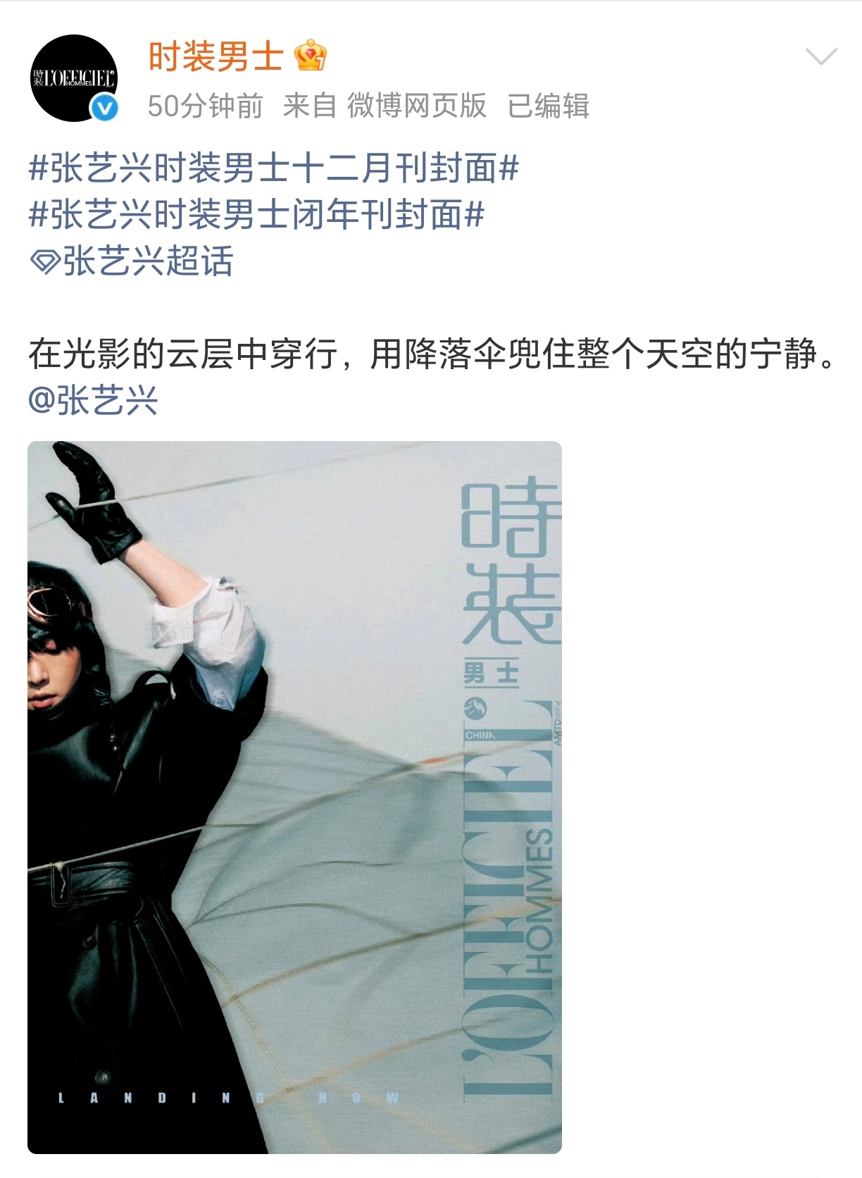 张艺兴时装男士十二月闭年刊预告是飞行员概念诶