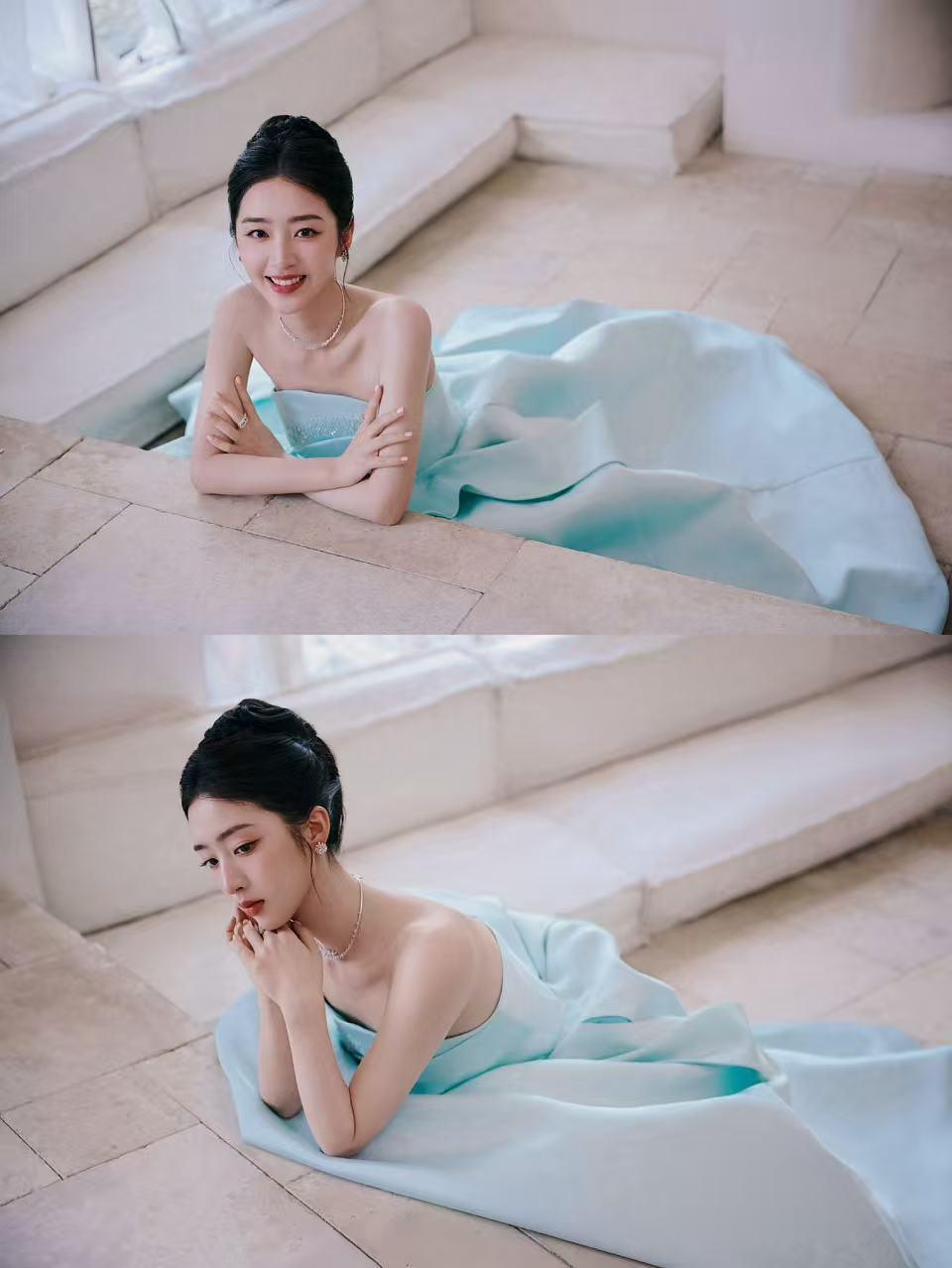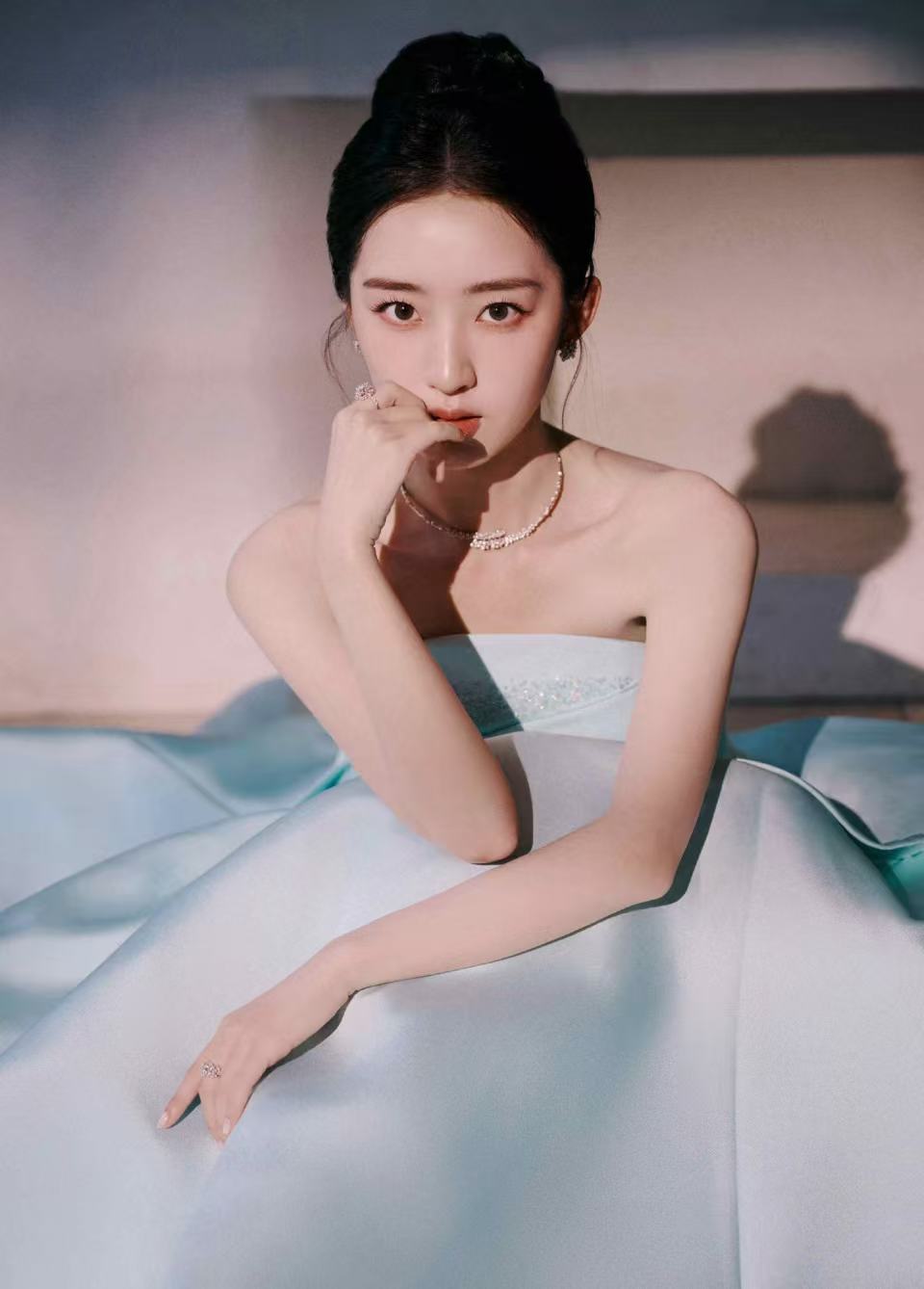 邓恩熙好温柔的美邓恩熙国剧盛典这身太惊艳!天青色抹胸裙温婉动人,眉眼间温柔气息