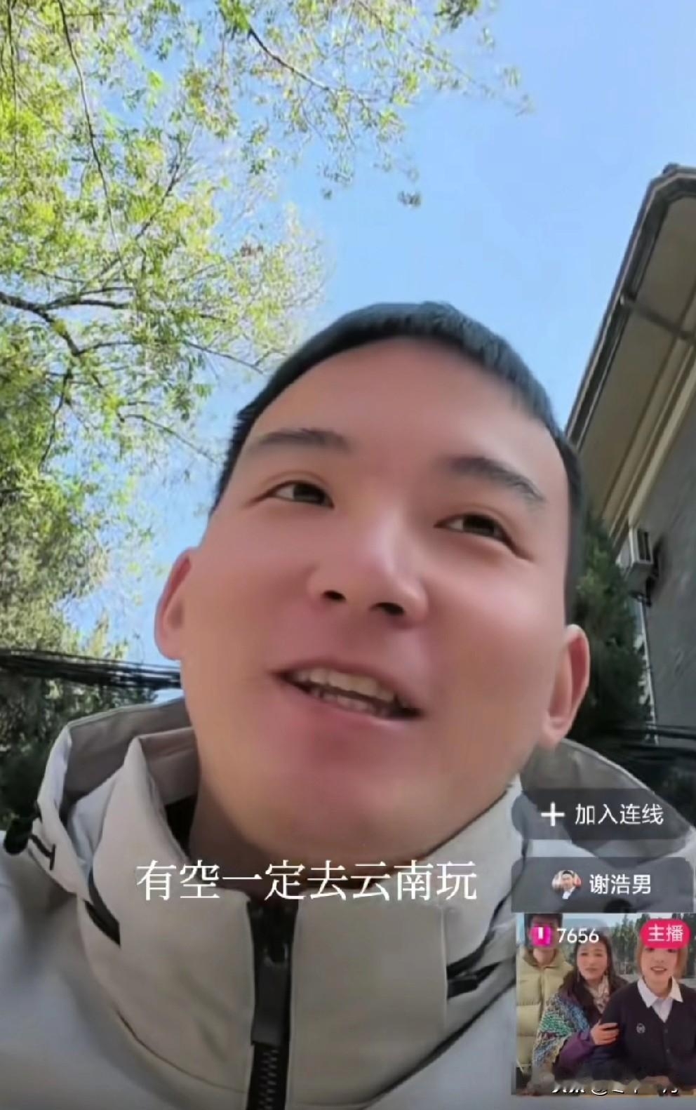 许健华接受邀请云南助农,直播间里又出现了他的儿子谢浩男。谢浩男是在吃饭时间来连线的。 这是许健华的首次助农直播,谢浩男学业繁忙,不能来到现场助力他的妈妈。他利用午休吃饭时间进行了现场连线,应粉丝之邀,唱起了那首歌:成都。 有粉丝调侃,把谢浩男上小黄车。这次的许健华已经很能放得开了,她马上接话道:我的宝宝只能看,不能上小黄车呀!
