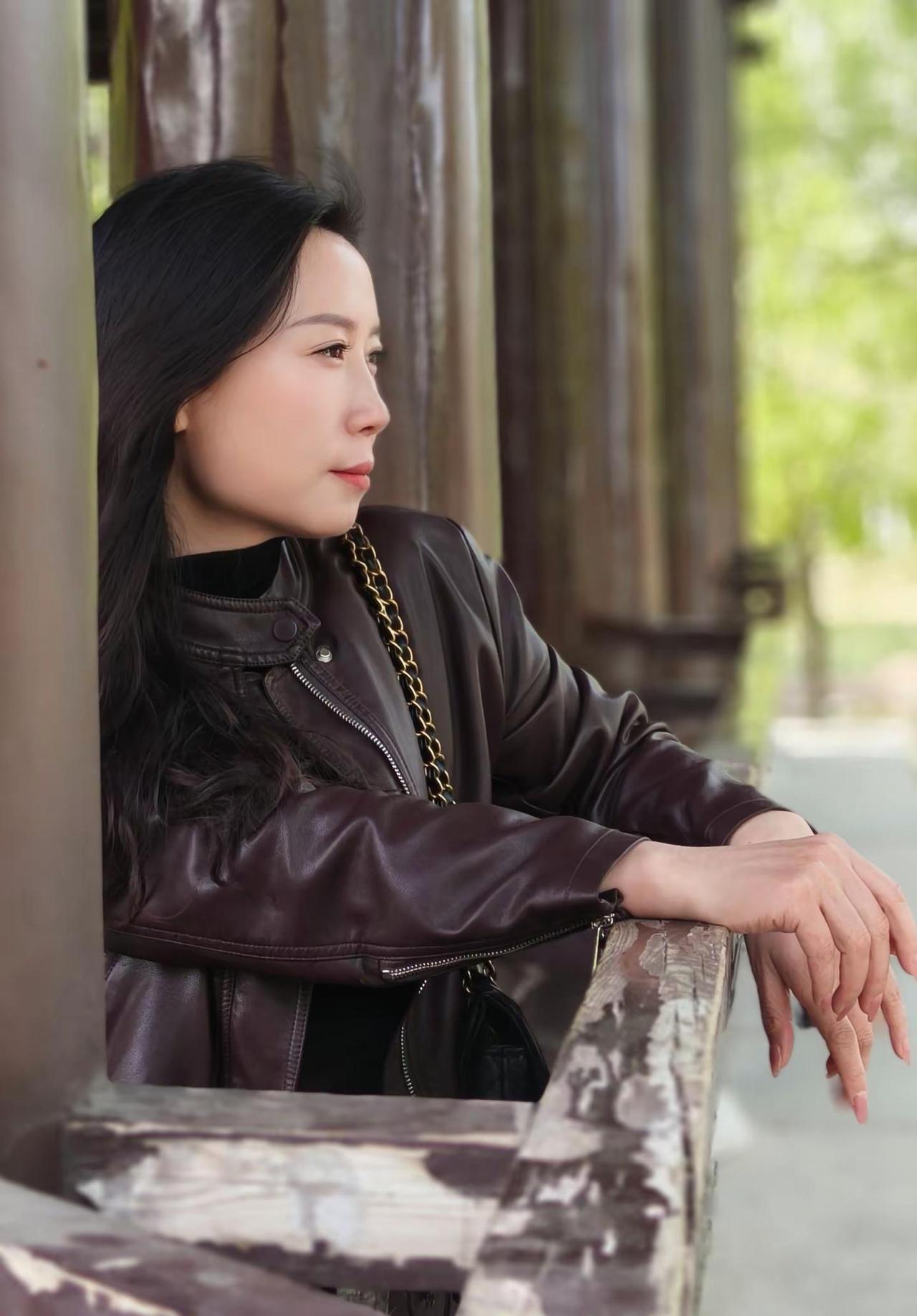 秋日漫步,树旁轻倚,时尚穿搭,自然之美。