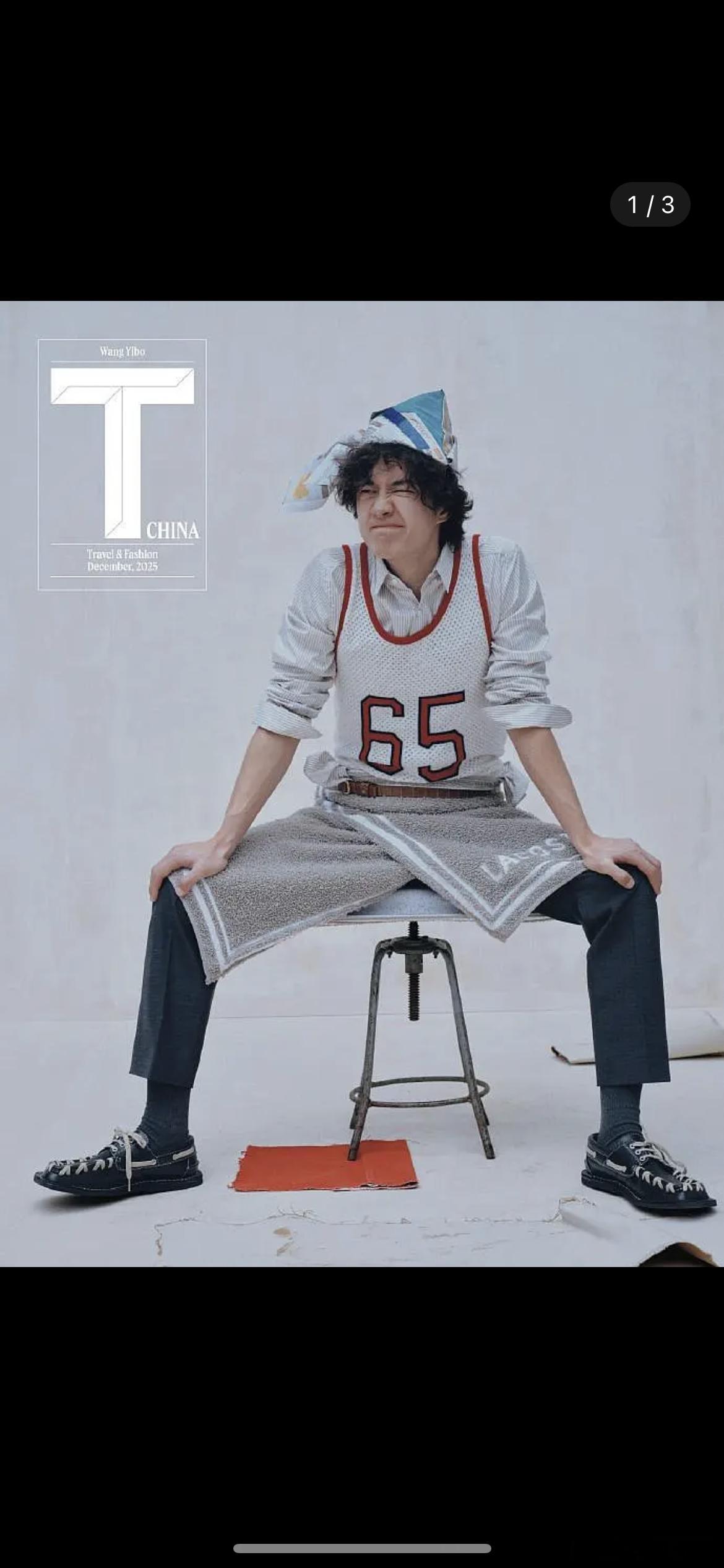 王一博身穿格纹衫一头爆炸卷登上TMagazine2025年12月刊封面预告