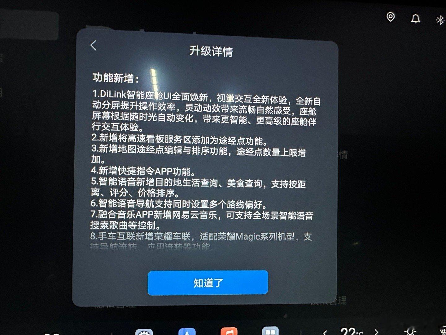 昨晚汉L终于升级到v1.4.1了,版本号没跳很多,但绝对是个大更新本来今天想拍个视频的,但太忙了没机会,明天吧简单说,界面漂亮了很多,使用逻辑也进步很大,大家收到赶紧升,不用犹豫比亚迪汉l智能车研究所