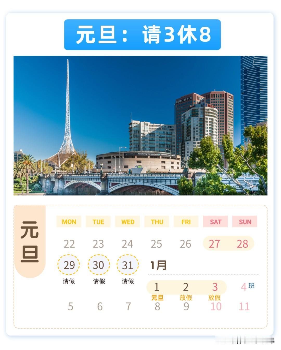 元旦请3休8合肥的宝子们!这波请假羊毛你们薅不薅?!请3天假直接凑出8天长假,既陪家人吃顿热乎的,又能出去旅游,还能在合肥溜溜,想想都美滋滋~所以,大家准备元旦请3休8吗?[灵光一闪]爆料