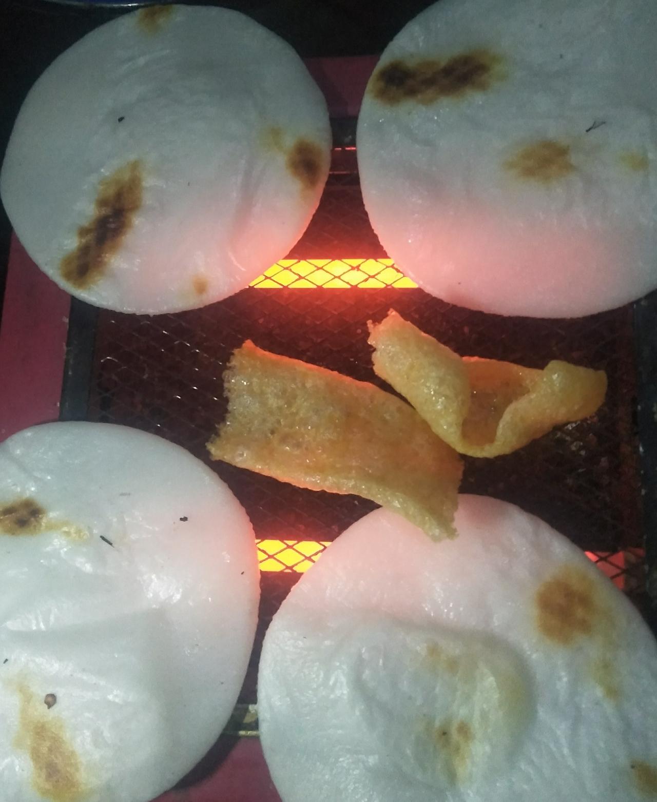 没有一个烤火器可以干干净净的度过云南的冬天! 晚上没啥想吃的,直接买了饵块来烤,还放了两块猪皮。 家里烤火器的火力有点小了,不然想烤洋芋吃,冬天就想烤点洋芋吃。 云南的朋友们,你们烤火器现在还干净吗?