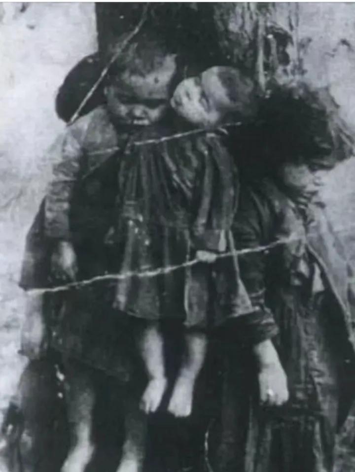 枯树下的哀嚎:南京沦陷时,那些不该凋零的童年 1937年冬,南京城的寒风裹着血腥气,穿透了每一条街巷。照片里的画面,哪怕时隔八十余年,依旧能刺穿人心——这张照片来源于侵华日军南京大屠杀遇难同胞纪念馆馆藏史料,收录于《南京大屠杀档案》(世界记忆遗产),画面中几名孩童被日军用粗硬的铁丝反绑双手,像破败的玩偶般悬吊在枯树之上。最小的不过三四岁,稚嫩的脸庞凝固着极致的恐惧,单薄的棉衣沾满黑褐色泥污与说不清的污渍,脖颈被铁丝勒得扭曲成诡异的弧度,那是生命被生生掐断的绝望印记。树干上深浅不一的抓痕,指甲抠出的木屑混着暗红血渍,是他们在窒息前最后的挣扎,每一道都刻着对生的本能渴望。 这些孩子的遭遇,从不是孤立的惨剧,而是南京大屠杀中无数无辜孩童的缩影。据《南京大屠杀史料集》等权威史料研究统计,1937年12月至1938年初,南京城内约4.3万名14岁以下儿童惨遭日军杀害,他们或被枪杀、活埋,或被焚烧、溺亡,而照片中这样被悬吊勒死的,只是日军暴行的冰山一角。幸存者常志强的回忆至今仍在滴血,这位曾被日军刺三刀后装死逃生的老人,余生都被童年阴影缠绕:“我每晚听见妹妹哭,80年了。”当年他全家拖儿带女逃向难民区,最小的弟弟还在襁褓中吃奶,日军闯入后,一把夺过孩子摔在地上,再用刺刀挑起,母亲扑上去阻拦,转眼也倒在了血泊中。照片里的孩子们,大抵也经历了同样的绝望,他们的父母或许就在不远处的废墟里,至死都没能再抱抱自己的孩子。 你看那破旧的棉衣,袖口磨得露出了棉絮,裤脚沾满泥垢与草屑,想必是逃难路上在田埂间、巷子里摔了无数次。三四岁的年纪,本该在巷口追着蝴蝶跑,在母亲怀里啃着烤红薯,听着童谣入睡,可他们面对的,却是日军冰冷的枪口、狰狞的笑脸,还有那越勒越紧的铁丝。没有一句哭喊声流传至今,可谁能想象,他们在悬吊时有多害怕?小手拼命抓挠树干,喉咙里挤出嘶哑的呜咽,直到最后一丝气息被寒风吞噬。这哪里是战争?这是赤裸裸的屠杀,是日本军国主义者对人性最卑劣的践踏! 日军的暴行,从来不是所谓“战场行为”,而是有组织、有预谋的杀戮,这一点在《南京大屠杀档案》收录的日军官兵日记、第三方目击者记录中均有铁证。他们深知孩子是一个民族的未来,却偏偏将屠刀挥向最无辜的群体,妄图用血腥恐怖摧毁中国人的抵抗意志。可他们万万没想到,这些孩童的鲜血,反而浇灌了民族觉醒的种子。从南京城的废墟中,无数中国人擦干眼泪,扛起反抗的旗帜,用血肉之躯筑起新的长城——因为所有人都明白,唯有拼死抗争,才能不让这样的惨剧再度上演。 八十余年过去,当年的枯树早已化为尘土,但那些孩童的身影、树干上的抓痕,永远刻在了民族的集体记忆里。我们铭记这段历史,从不是为了延续仇恨,而是为了守住做人的底线:任何时候,都不能让战争的阴影笼罩童年;任何情况下,都要捍卫人性的尊严。那些凋零在寒冬里的小生命,本该拥有繁花似锦的人生,他们的悲剧,是人类文明史上永远无法愈合的伤疤。 各位读者你们怎么看?欢迎在评论区讨论。 铭记历史 守护和平 南京大屠杀 历史不容忘却