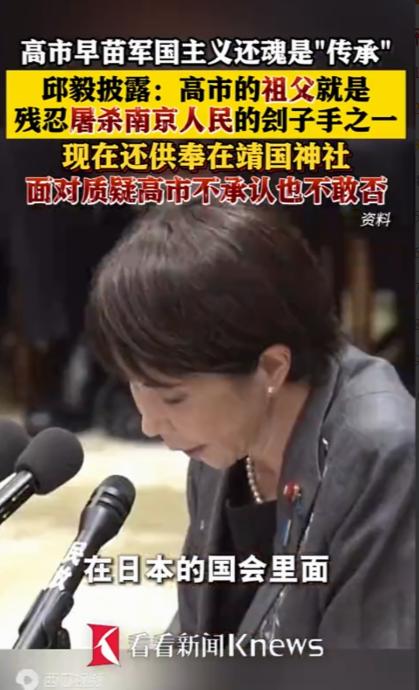 邱毅老师一披露,直接扒出了日本首相高市早苗的家族黑底 — 她的祖父根本不是什么 “为国效力” 的军人,而是双手沾满中国人民鲜血的南京大屠杀刽子手! 麻烦看官老爷们右上角点击一下“关注”,既方便您进行讨论和分享,又能给您带来不一样的参与感,感谢您的支持! 高市早苗一直以来打着“祖父为国效力”的旗号,试图用家族背景包装自己,好像血统里流着的就是政治智慧和军事荣耀。 但历史不会说谎,也不会随你包装而消失。你可以在照片里摆出英姿飒爽的样子,但无法抹去你祖父手上曾经沾染的鲜血。 这不仅仅是家族问题,更是政治问题,高市早苗的政治野心,借着祖父那段扭曲的历史逻辑,不动声色地向台湾问题伸手。 仔细看她的政治动作就能发现,所谓“对台政策”、“区域安全议题”,背后暗藏的其实是日本右翼势力的影子。 高市早苗这个人,从上台开始就频频释放信号,推动日本在台海事务上采取更主动、更军事化的姿态。 表面上她讲的是“安全合作”“区域稳定”,实际上骨子里是延续了那种侵略思维,和她祖父那个时代别无二致,只不过换了面孔和语言包装。历史没有远去,只是被故意遮掩罢了。 有趣的是,高市早苗的政治策略其实很老套:利用民族主义情绪,拉拢右翼力量,掩盖自己的短板和政治野心。这种逻辑听起来耳熟吧? 没错,几乎和二战时期的逻辑如出一辙,“为国家利益,不惜一切”,背后是一套合理化侵略的思维模式。只是这次,历史的“鬼影”跑到了台海上空。台湾,正成了这场历史逻辑的实验场。 你可能会问,这和我们中国有什么直接关系?答案很简单,历史的教训不允许重演。高市早苗的行为,绝不仅仅是日本国内的政治问题,它涉及的是区域安全、涉及的是中国的核心利益,更涉及全体中国人的情感记忆。 如果有一天,日本右翼势力借着所谓的“安全合作”或“历史遗忘”,在台海上搞动作,那血的教训就会以另一种方式重现。我们不能允许这种情况发生,因为这不仅是政治利益,更是道义和历史责任的底线。 而且,高市早苗这个人政治手段相当灵活。她知道自己无法靠能力取胜,就靠血统和意识形态博取信任,再用外交话术包装军事动作。 她频频强调所谓“国际安全合作”,其实质就是给日本在台海插手提供合法化理由。这种手段,和她祖父时代的侵略策略其实在本质上是一脉相承的,目的就是扩张,借历史的光环掩盖当下的侵略意图。 如果我们冷静分析,高市早苗背后的右翼势力已经把台湾视作棋子。别以为这只是政治表演,她们实际上在做两件事:一,试探中国的反应;二,逐步把军事存在合理化。 她个人政治野心与历史逻辑交织在一起,形成了一个危险的叠加效应。每一次她在国际场合发声,背后都有祖父时代的影子在支撑,这就是为什么她的“家族光环”被揭开之后,会引起这么大的反响。 中国对此,不能有半点松懈。历史的血泪告诉我们,侵略从来不会因为时间流逝而消失,只会换个形式、换个面孔、换种包装再次出现。 今天的高市早苗,看似温文尔雅、政治话语精致,实际上背后是极端危险的历史延续。每一个台湾海峡的动作,每一次对台军事言论,都可能是对历史的一次致敬,但这种“致敬”是用鲜血换来的。 所以,当我们说“不能忘记历史”,不是一句口号,而是必须的警示。高市早苗的曝光,让每一个关心台海、关心中国安全的人都该警醒:历史未曾远去,警惕和防范必须时刻在线。 我们不能仅仅靠外交口号或者表面的平静来应对,而是要通过全方位的战略、政治和舆论手段,让任何试图重演历史的人明白,中国不会坐视。 而从舆论角度来看,这次邱毅老师的披露,不仅是揭开了一个政治人物的家族历史,更提醒了整个社会:政治人物的家族背景和历史逻辑,往往比他们口中的“政策纲领”更能说明问题。 你可以伪装得再好,但血和历史是掩盖不住的。对高市早苗来说,她的祖父已经把这张牌给打在了她的手上。 每一次提到祖父,她就必须面对那段不堪回首的历史,而这段历史,正在国际舆论场上给她制造麻烦。 这件事告诉我们一个现实,政治家靠包装祖父的光环可能能赢一时舆论,但在历史面前,没有任何伪装能长期存在。 高市早苗想靠家族和政治手腕走捷径,最终会碰到历史的铁墙。而对于中国来说,面对这种潜在威胁,警觉、应对、历史记忆都必须在线,不能掉以轻心。 所以,这件事不是简单的“扒家底”,而是一次对全社会的警示:历史未曾远去,血的教训需要记住。高市早苗靠祖父的黑历史包装自己,终究逃不过公众的眼睛和历史的审判。 未来,她每一次的动作都不只是个人政治行为,而是历史逻辑的延续,而我们,必须看得清楚,防得牢靠。