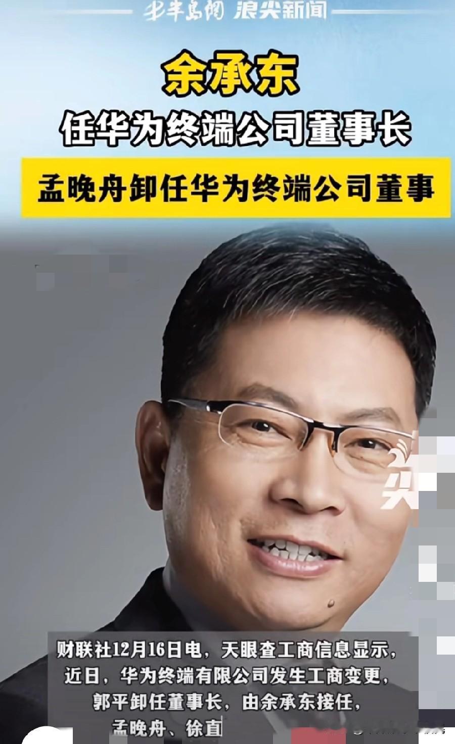 快讯!快讯! 孟晚舟卸任华为终端董事长,余承东接任。众所周知,余承东经过多年奋斗终于如愿以偿,坐上了华为终端的董事长位置,我们有理由为他感到高兴和骄傲!多年前,余承东因为华为的制裁而失眠,但他没有选择放弃,而是选择继续与华为共进退,他把华为当作自己的事业,在台前尽心尽责,在幕后奉献自劳,他用自己的辛勤付出换来了今天的成功,我们由衷的祝福余总!