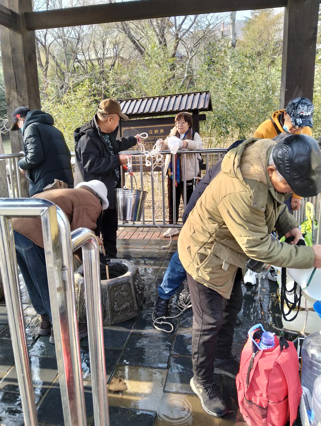 磁山半腰上有一口井叫《汉武井》前来取水的市民携带大桶小桶,络绎不绝。 据一位取水