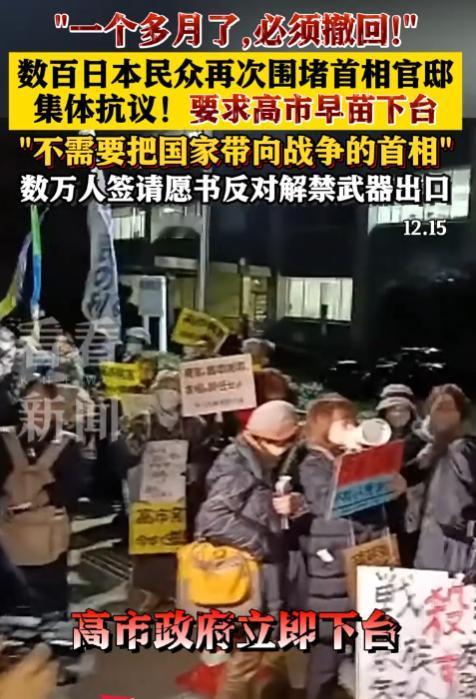 高市早苗还能在首相位置上坐多久?昨天晚上,日本民众再次在首相官邸外抗议:“一个多月了,必须撤回!”“高市早苗下台!” 11月7日,日本政客高市早苗发表涉台错误言论,公然违背《中日和平友好条约》与《中日联合声明》的核心精神。 一个多月后的15日晚间,日本民众再次聚集首相官邸前举行示威,高喊“必须撤回!”的口号。 既要求其立刻收回错误言论,更明确呼吁其下台,民众对这一言论引发的战争风险满是担忧与愤怒。 高市早苗的涉台言论绝非无心之失,而是明着无视国际共识与双边约定的危险操作。 身为国家层面的政客,她的表态本质是干涉他国内政,故意挑动地区对立,这种行为直接戳中了日本民众最敏感的神经。 日本社会经历过战争浩劫,民众对战乱的痛苦记忆刻在骨子里,没人愿意再让国家陷入纷争。 高市早苗的言论被民众看作是在拱火,大家心里清楚,把国家往战争路上带的领导人,根本护不住老百姓的安宁日子。 更让民众不满的是,其他政客对此保持沉默,这种沉默像是在纵容危险言论扩散,暴露了部分政客在维护和平上的失职。 国家领导人的本分是守护民众福祉、推动国家平稳发展,靠激进言论博眼球、谋私利,终究会遭到民众反对。 不管是日本政客还是地区各方,都该正视民众的呼声,丢掉战争冒险思维,守住双边条约与国际共识,这才是共赢的正道。 和平从不是政客嘴边的空话,而是老百姓过日子的底气。 【评论区聊聊】高市早苗还能挺多久? (信源:“一个多月了,必须撤回!”