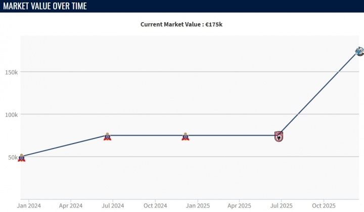 值得一提的是,王博豪17.5万欧元身价在队内并列排名第14位,高于身后10名球员。