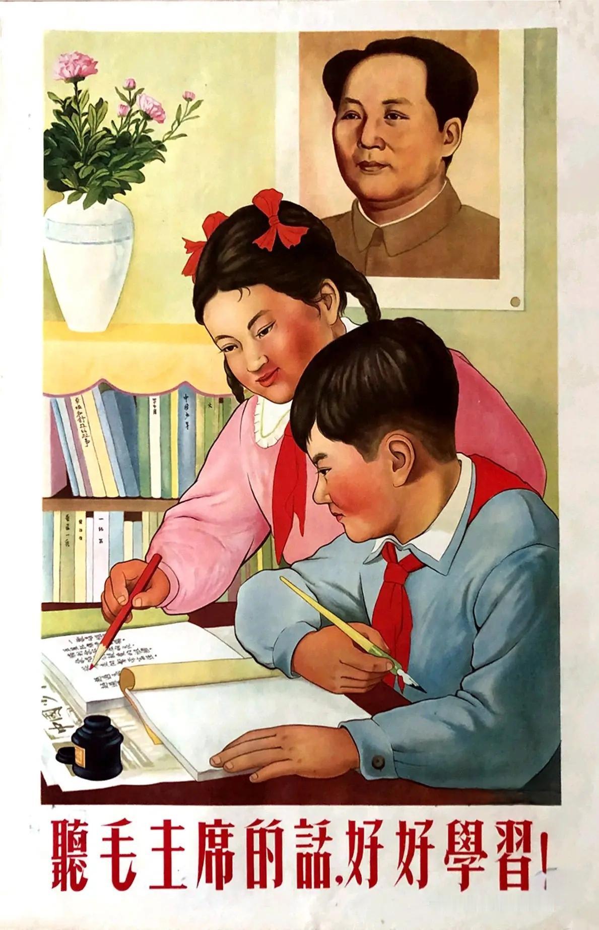 #红色文化# 宣传画欣赏: 《听毛主席的话,好好学习!》