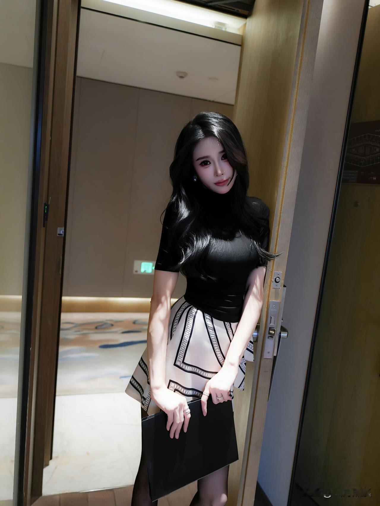 湖边白衬衫+黑裙+高马尾,性感又清甜的姐姐