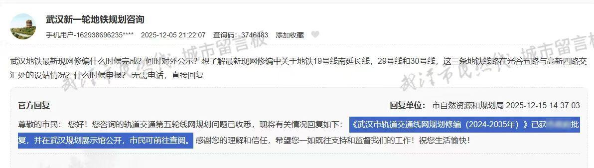 《武汉市轨道交通线网规划修编(2024—2035年)》 近日,从武汉城市留言板获