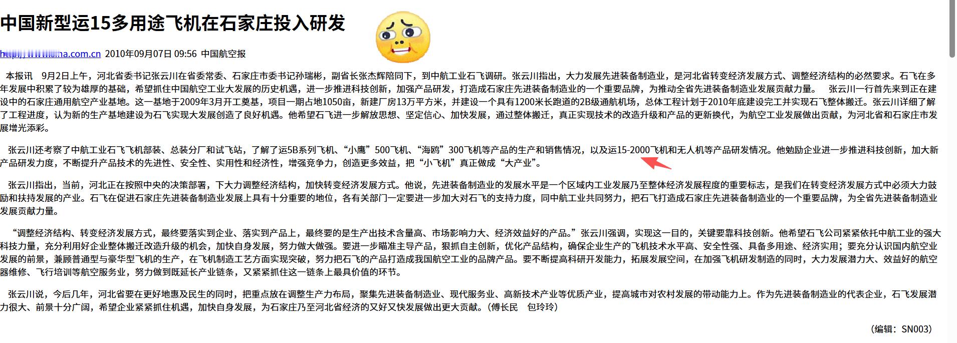 不信谣、不传谣,一切以官方消息为准。如果传闻型号数字是真的,算是可复用型号了,运15-2000,真的存在过,本来是想着山寨著名的塞斯纳208“大篷车”,续写运5辉煌呢。