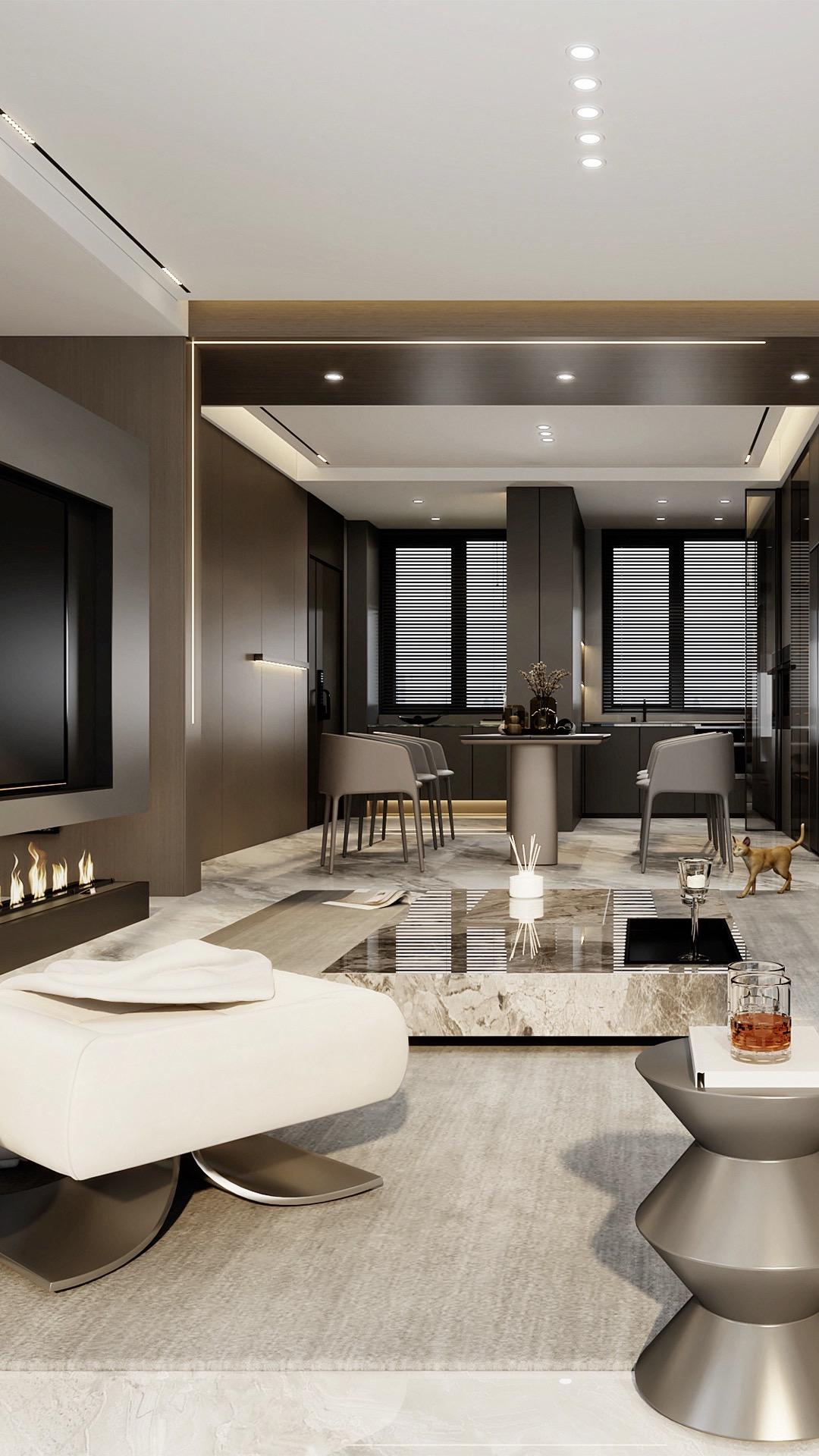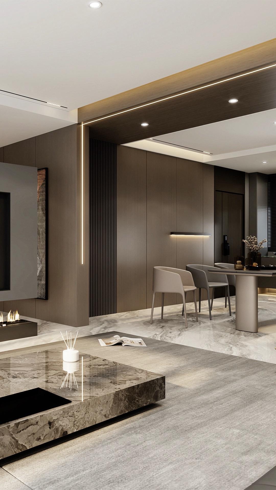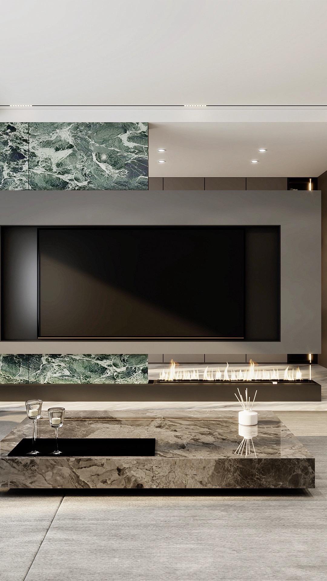 • 𝑳𝒀 𝑫𝑬𝑺𝑰𝑮𝑵.电视墙以悬空姿态呈现,沉稳的岩...