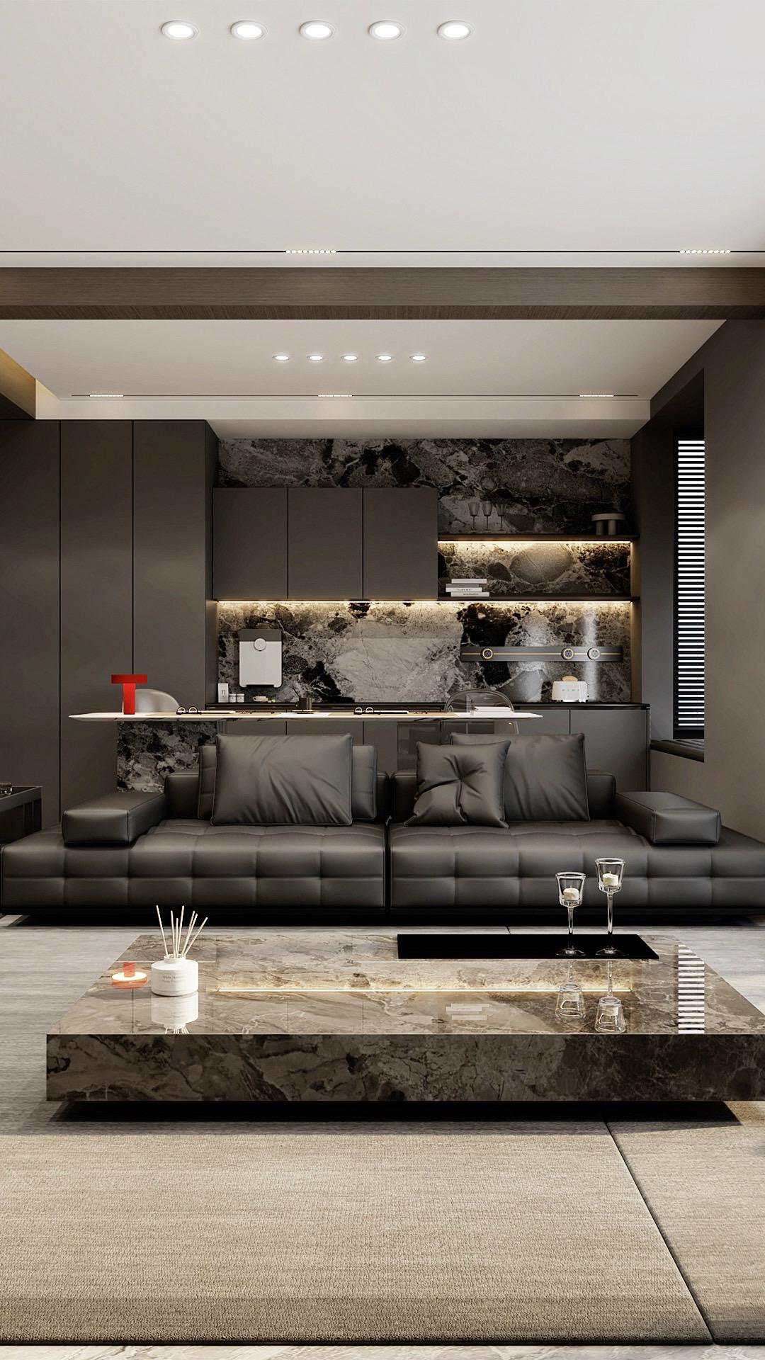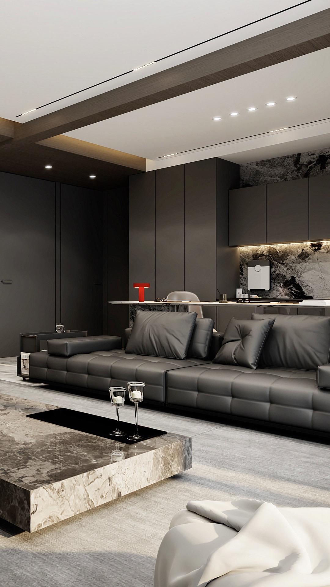 “意式轻奢风”谁能不爱呢~ 深灰色和木色真是绝配、少一个都出不来这个效果!