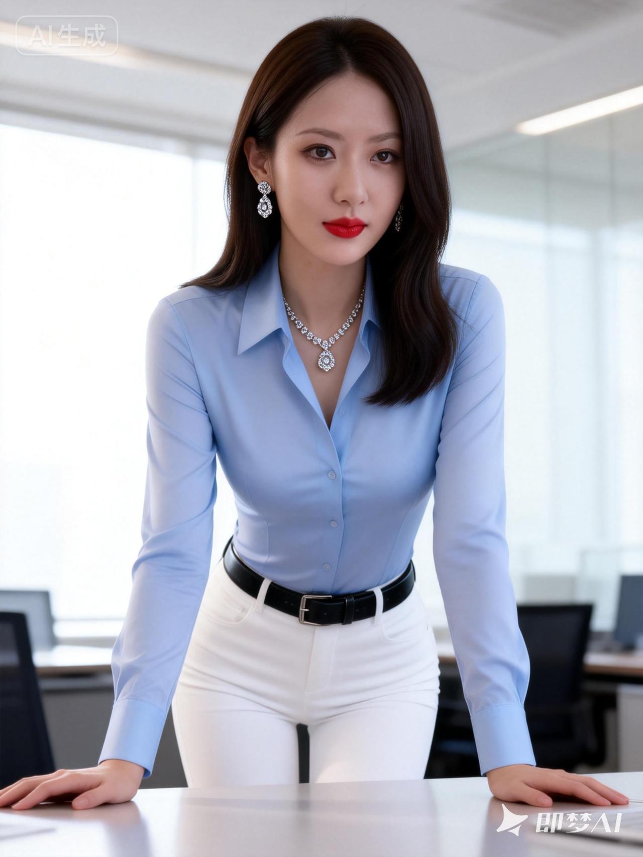 优雅白衬衫搭配深蓝色紧身裤,尽显时尚魅力!💃✨