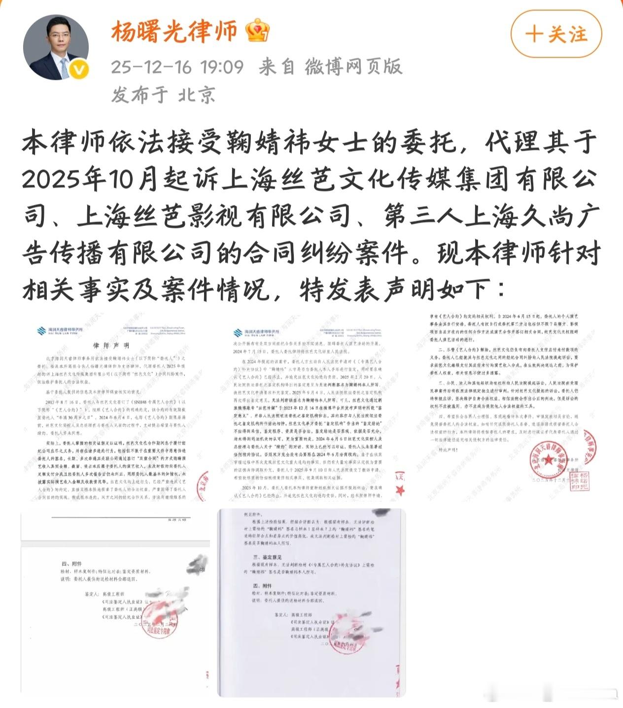 鞠婧祎方艾特丝芭 鞠婧祎方发律师声明我的天呐 法院认可的笔迹鉴定无法鉴定是鞠婧祎本人所签 公司是在混淆视听吗 到底想干啥啊