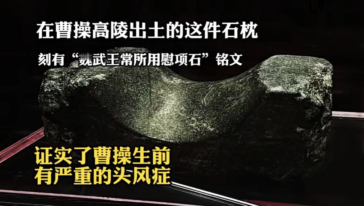 曹操高陵出土的石枕,刻有 “魏武王常所用慰项石”铭文,说明曹操生前确实有严重的头疼情况,竟然需要用石头做成枕头来缓解。 曹操