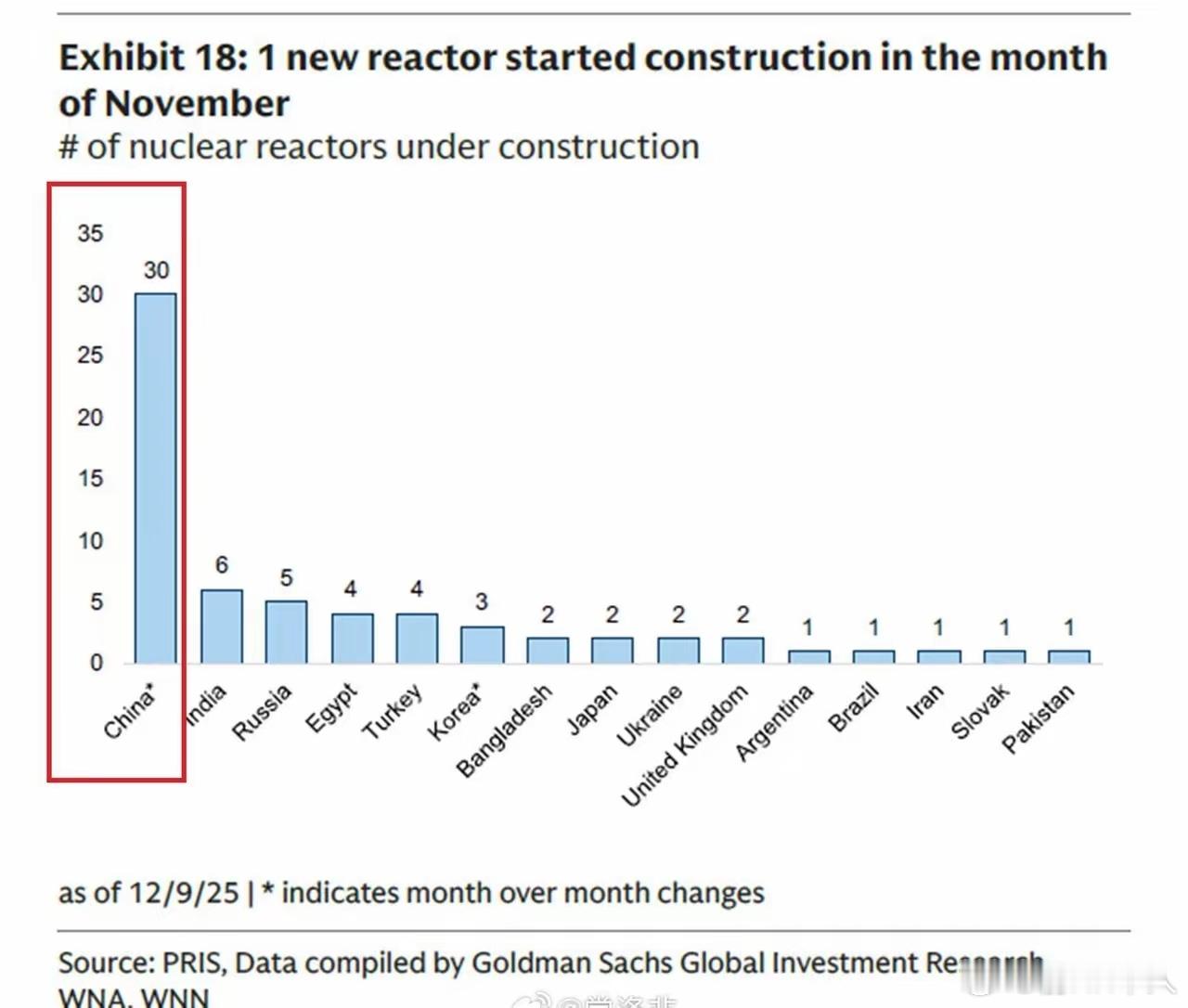 西方媒体:中国主导全球核能发展!说中国为了为满足飙升的能源需求,正引领着这场竞赛。根据西方媒体公布的数据,中国目前在建的核电站反应堆有30座,等于排名第二至第十的9个国家的总和,接近全球一半。 印度阿三也在疯狂建设核电站,以6个堆排名第二,俄罗斯以5个堆列第三。 美国虽然特朗普要重新启动核电站建设,但是目前没有在建商业堆。 国外这些电站,中国份额还是很少,需要加速钍堆成熟,那就大杀四方了。