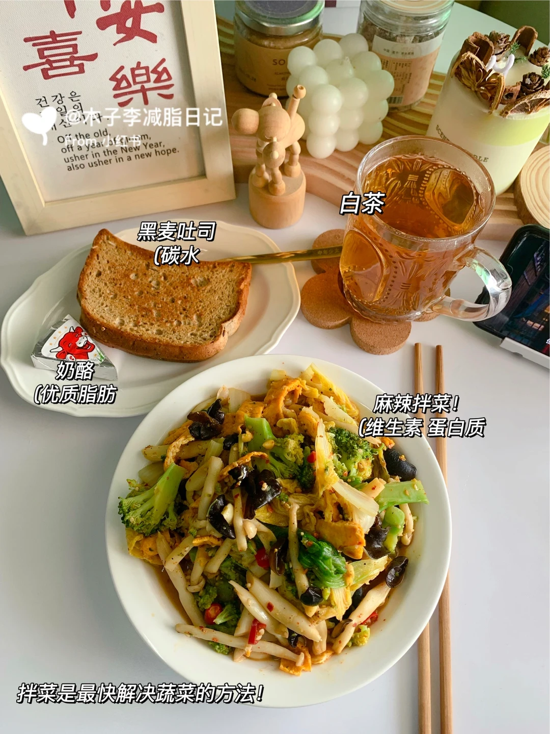 🥙午餐:麻辣拌蔬菜➕吐司奶酪➕白茶
