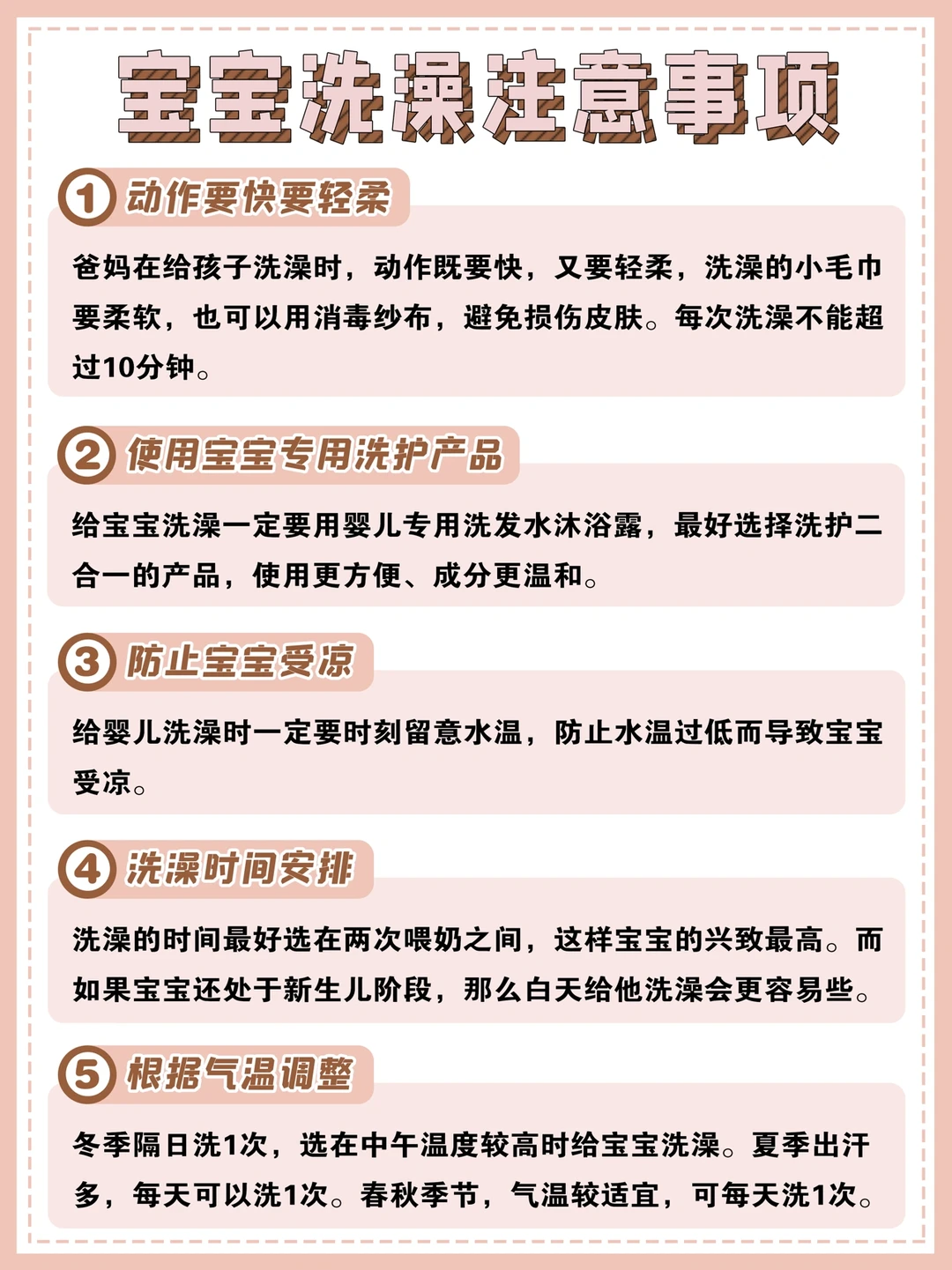 还记得Cyndi刚出生回到家洗澡都是好几人出动给她洗,我都不知道怎么洗,小孩子太娇嫩了,幸亏护士姐姐来帮忙,一步步教我,我才慢慢会给她洗澡🛁 . 今天把我的一些经验分享给新手麻麻👩,有需要的麻麻可以借鉴下噢~ . ⚠️宝宝洗澡注意事项 1.动作要快要轻柔 爸妈在给孩子洗澡时,动作既要快,又要轻柔,洗澡的小毛巾要柔软,也可以用消du纱布,避免损伤皮肤。每次洗澡不能超过10分钟 2.使用宝宝专用洗护产品 给宝宝洗澡1⃣️定要用婴儿专用洗发水沐浴露,蕞好选择洗护二合一的产品,使用更方便、成分更温和 3.防止宝宝受凉 给婴儿洗澡时1⃣️定要时刻留意水温,防止水温过低而导致👶受凉 4.洗澡时间安排 洗澡的时间zui好选在两次喂奶之间,这样宝宝的兴致zui高。而如果宝宝还处于新生儿阶段,那么白天给他洗澡会更容易些 5.根据气温调整 冬季隔日洗1次,选在中午温度较高时给宝宝洗澡。夏季出汗多,每天可以洗1次。春秋季节,气温较适宜,可每天洗1次 . ⚠️宝宝洗发沐浴露挑选攻略 1、看成分 关注产品的成分是否天然🈚️刺激,不要选择添加各类人工香精、酒精等 2、看质地 宝宝肌肤娇嫩,选择泡沫绵密丰富的产品,清洁起来更方便,更加温和 3、看PH值 与宝宝肌肤PH值相近,约为5.5,与宝宝肌肤接近,更温和,不使👶皮肤干燥紧绷 4、看功效 🈚️泪配方:更加温和,避免沐浴时刺激宝宝双眼👀 泡沫易冲洗:泡沫绵密,易冲洗干净不假滑滋润保湿:皮肤不干燥 5、测效果 先用小样或小瓶装的产品,在宝宝手上涂一点,看是否小敏感 . 我给Cyndi用的是子初米胚芽洗浴二合一,米胚芽成分比较温和,更适合👶使用,🈚️泪配方不用担心刺激到宝宝眼睛👁️。以前给Cyndi洗澡用其他宝宝沐浴露🧴,她还有点吵闹,嚷嚷着“麻麻,不要洗头”,换这款之后,乖多啦,每天特享受洗澡,经常洗着不想出来🛁 . 它是按压出泡泡,不用揉搓起泡,👶宝宝喜欢这种宝宝沐浴露。泡沫比较绵密,比较好冲洗~Cyndi洗完澡皮肤也不会干干的,皮肤Q弹