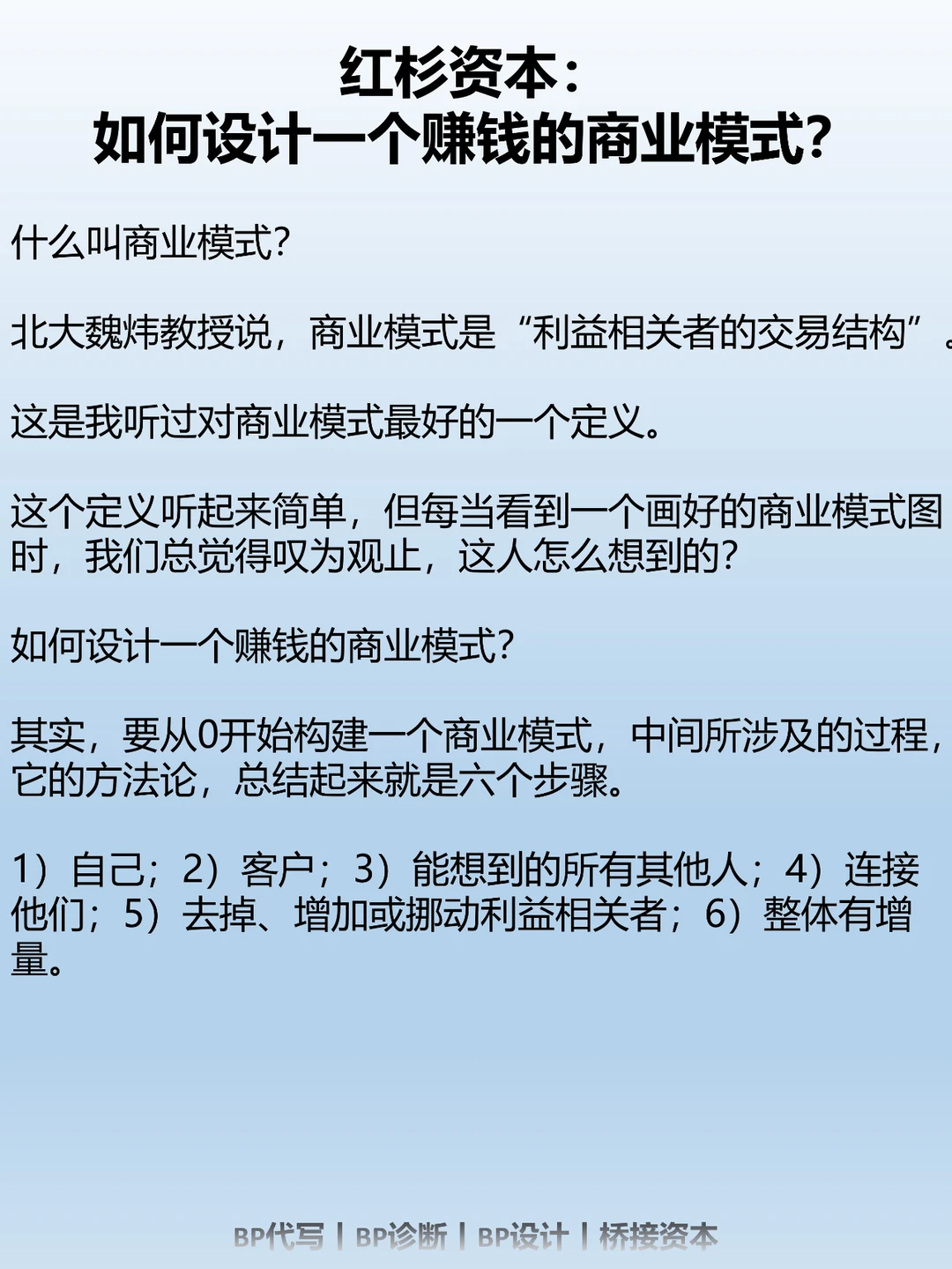 设计一个新的商业模式有6步。