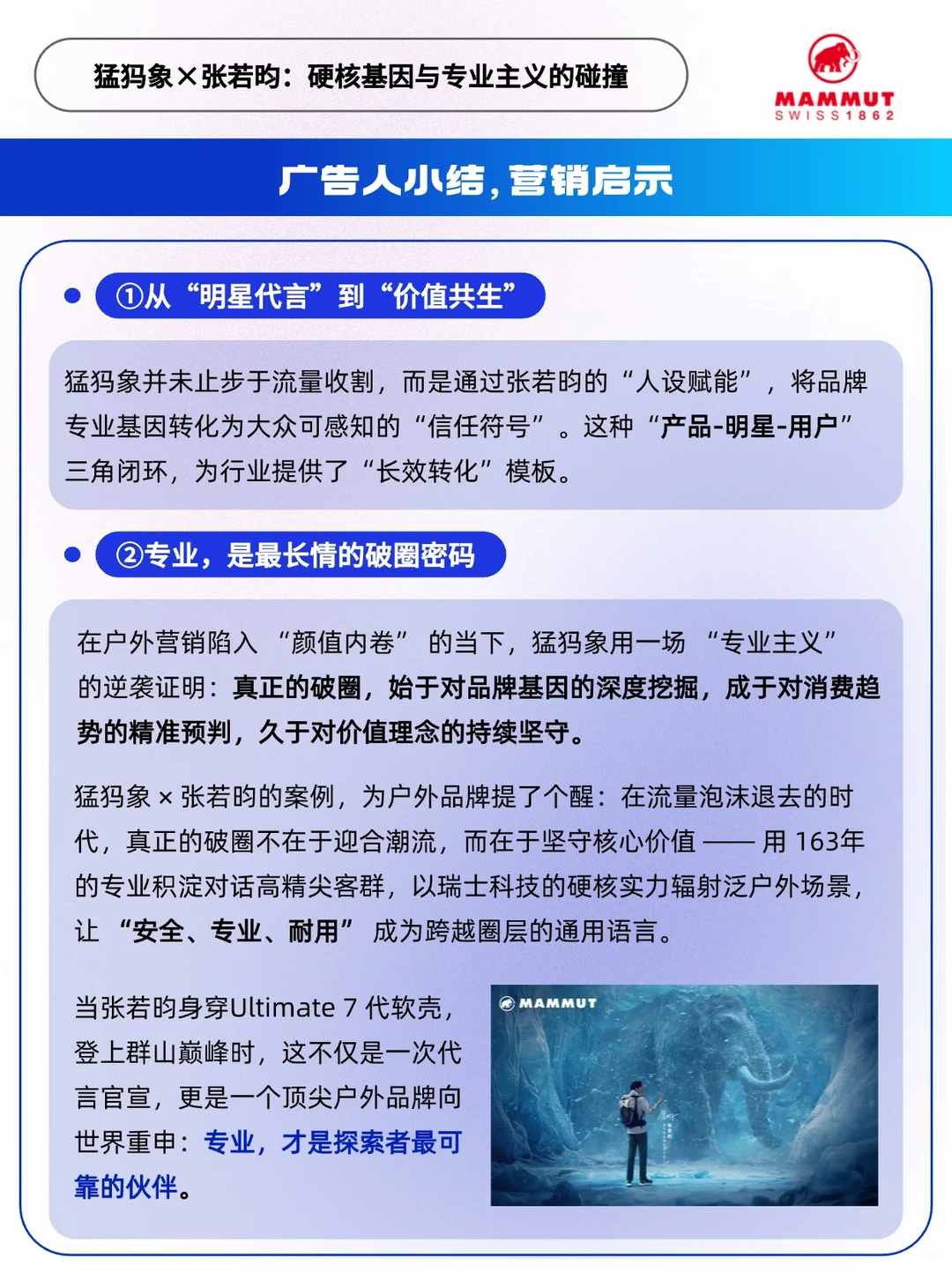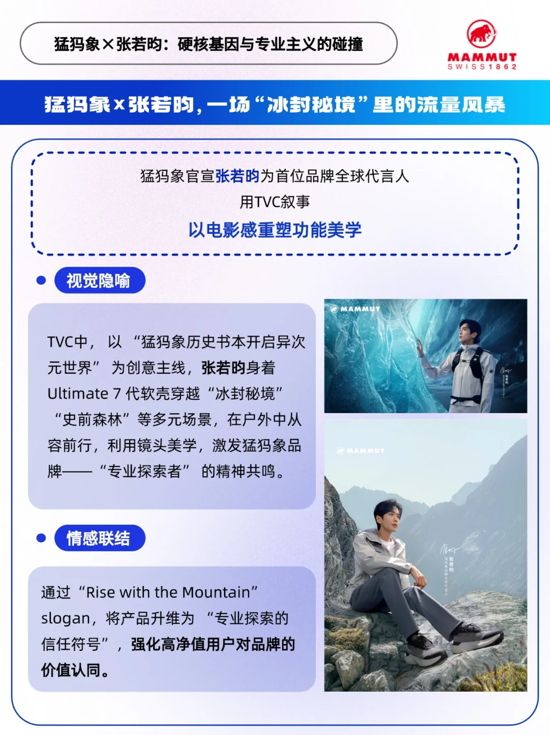 2025年4月28日,随着MAMMUT猛犸象品牌全球代言人张若昀的官宣,以及冰封秘境主题 TVC 的上线,猛犸象不仅激活了 163 年的硬核基因,更重新定义了户外品牌与明星合作的价值范式🔥