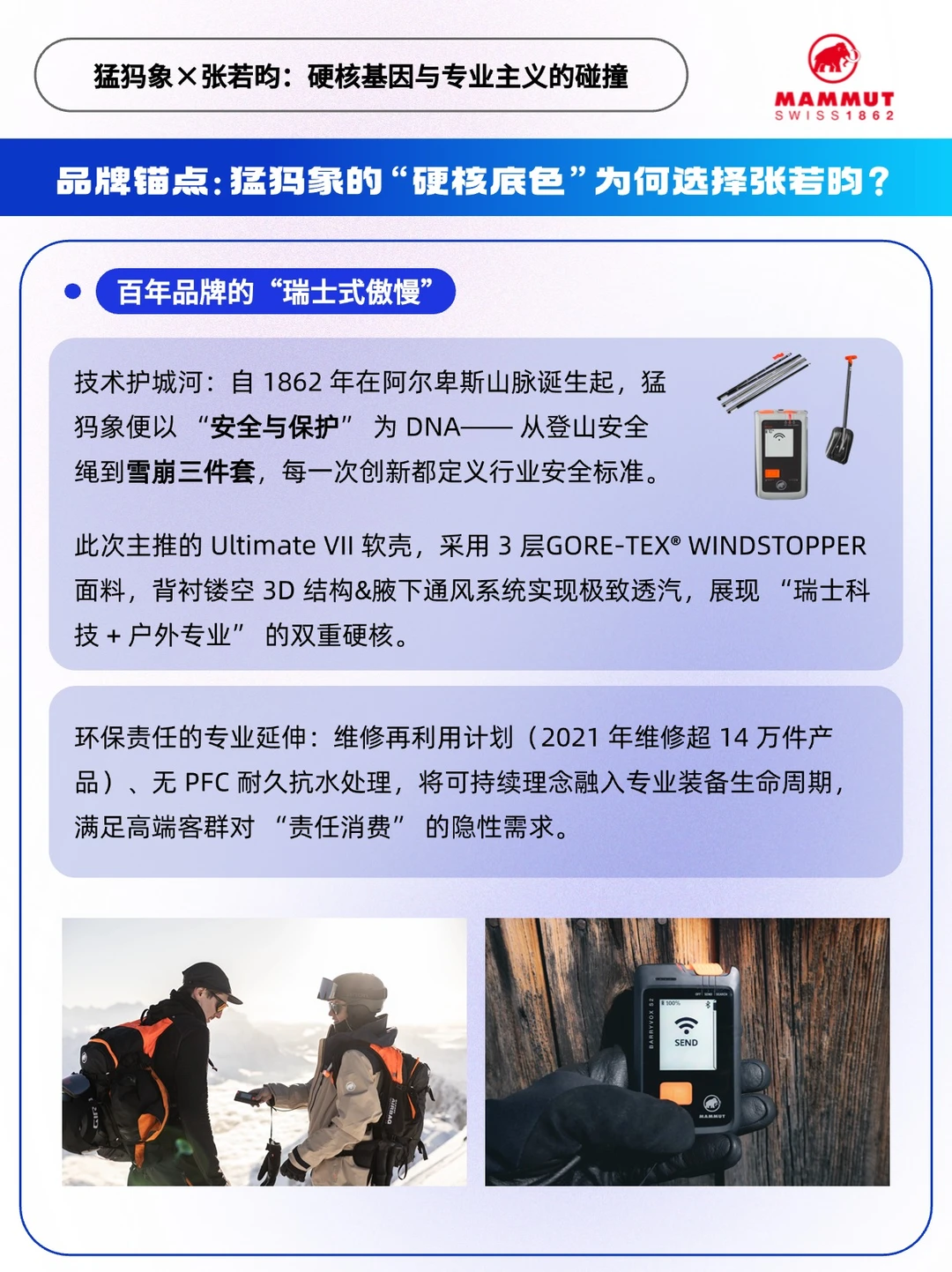 🔵当百年品牌的“瑞士式傲慢”,遇上张若昀的“人设共振”,猛犸象并未止步于流量收割,而是通过张若昀的“人设赋能”,将品牌专业基因转化为大众可感知的“信任符号”,同时用技术壁垒与品牌积淀构建护城河。
