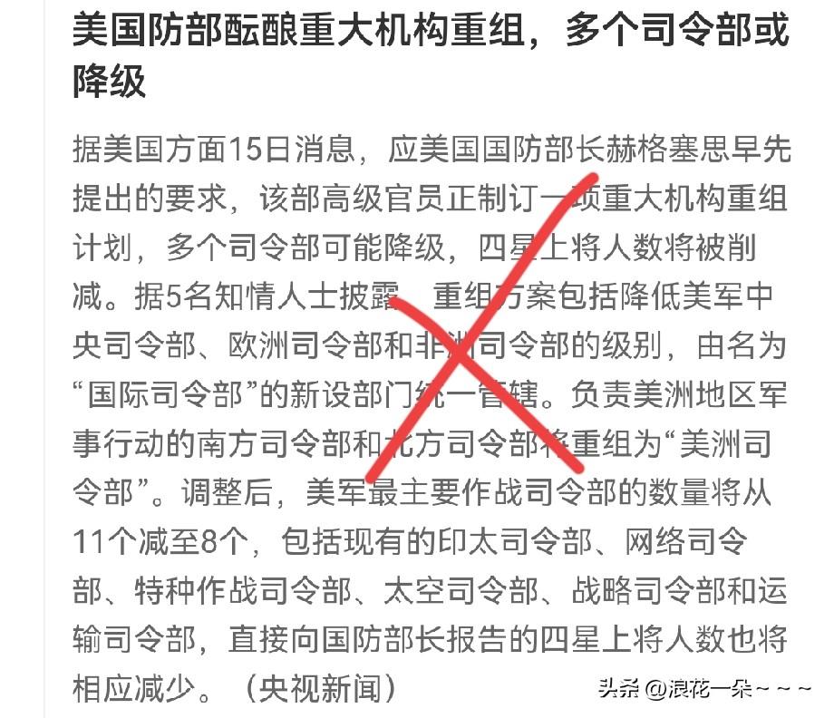 重磅! 最新消息!美国防部酝酿重大机构重组多个司令部或降级。 看来美国国防部长赫格塞斯上任一年,不干出点政绩是心有不甘啊! 还记得,前一段时间召开将领大会吗?当时要让大家减肥,结果有几个将领直接就辞职了。 如今进行重大机构重组,我感觉和上一次目的差不多,立威! 为什么赫格塞思要这么干? 政绩是一方面,最主要的还是: 美国没钱了,这么多部队撒在海外,美军工资又这么高,国防开支太大,承受不住了,要不美国怎么一再要求欧洲国家以及他的联盟,提高国防支出占GDP的5%呢。甚至都有要求日本和韩国等国家养美军一说! 其二,估计美军高层内部腐败、效率低下的不得了,你看看那f-16战斗机老是从天上掉下来,缩减将领人员,可能要把节约的钱用在发展武器装备上,以实现美军新版国家安全战略——重返西半球,把重要兵力部署从欧洲和中东撤回到美国周边。 其三,有可能是美防长指挥不动,毕竟他太年轻,资历不够,那些老将领怎么可能都听他的指挥,通过和特朗普配合强力减员,可以增加自己的威信以及将来的指挥能力和效率,让战争部真正战争起来。 对此,你们怎么看?大家一起唠唠嗑。