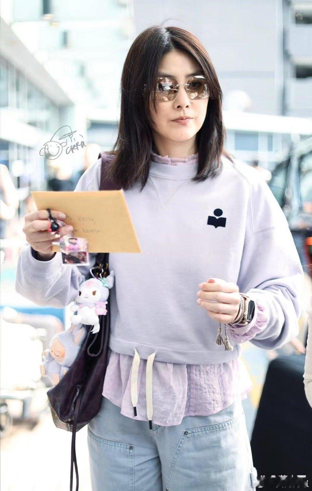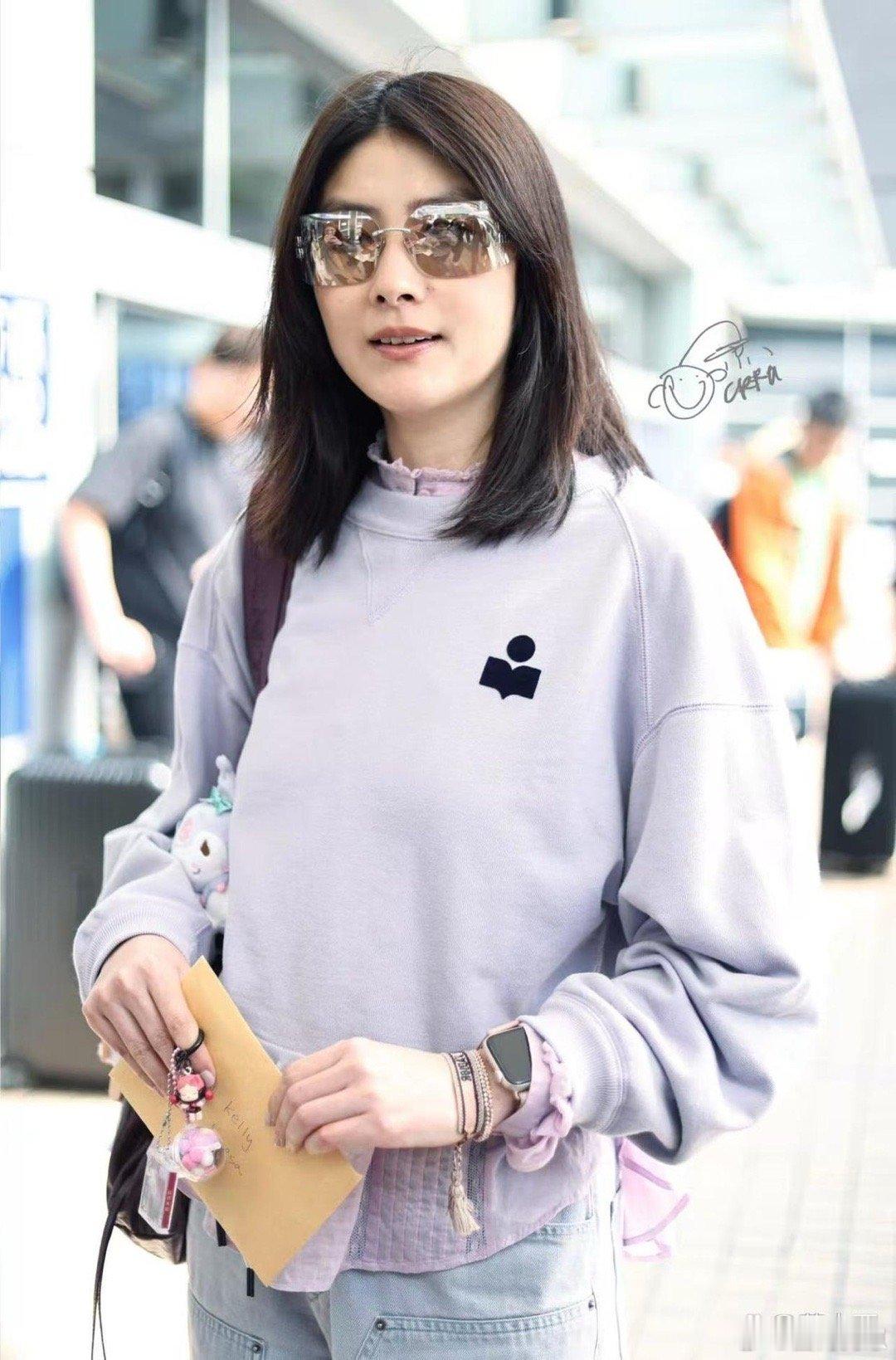 52岁陈慧琳状态太绝了!香芋紫卫衣配牛仔裤,减龄又时髦,完全看不出年龄~