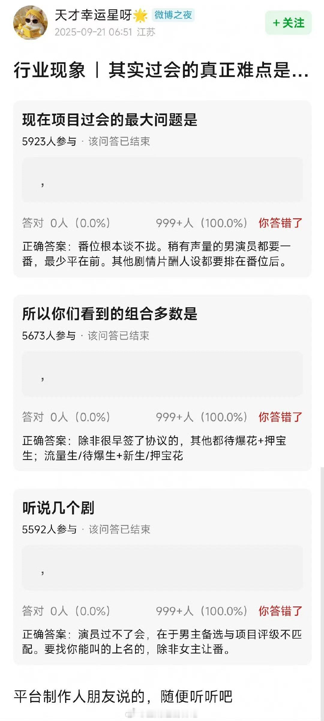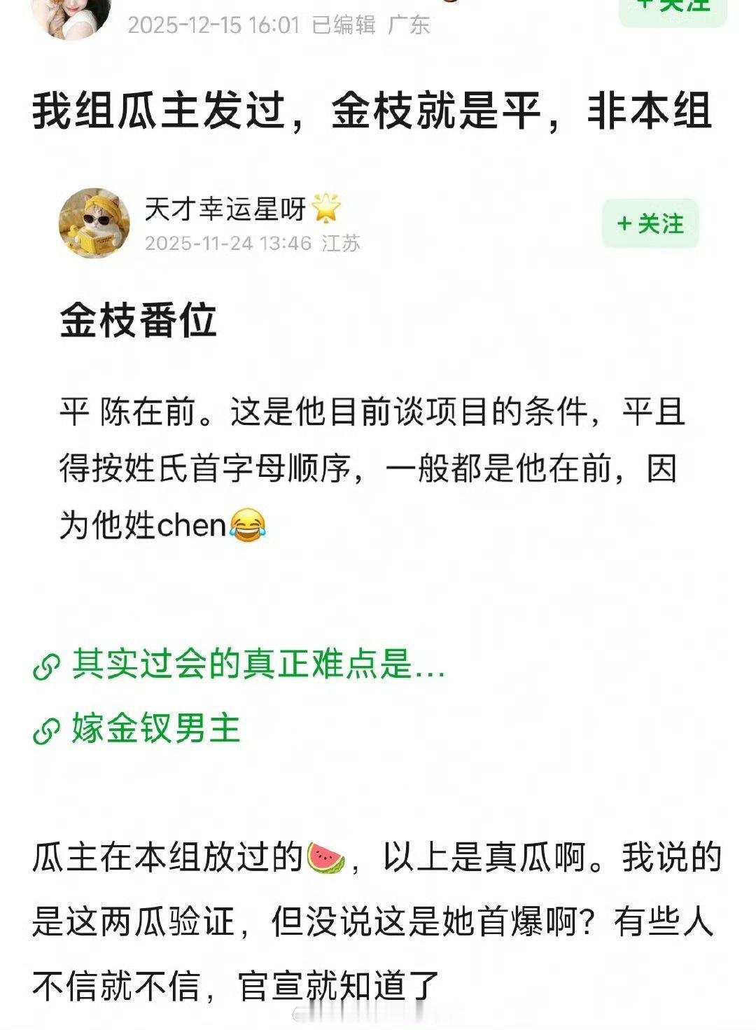 关于金枝的番位,再多说几句目前平我觉得很合理,两个人都没什么粉,也没有爆剧热播剧,平就平啊还有,顺带一提我的观点,如果男流量的粉丝能拿出十万云包场,或者再低一点,五万,我就觉得应该可以和任何【非流量花】平,是任何(不包括胡花)云包场多的男流量要一番也不是不行非流量花没剧粉,没流量,要啥没啥,还不如给男主一番,粉丝还会贡献大量云包场支持呢…其实平番为啥不行呢,一起护剧一起吃红利呗而且书是大女主,剧就一定是大女主吗?门内娱80%可能性改成二人转