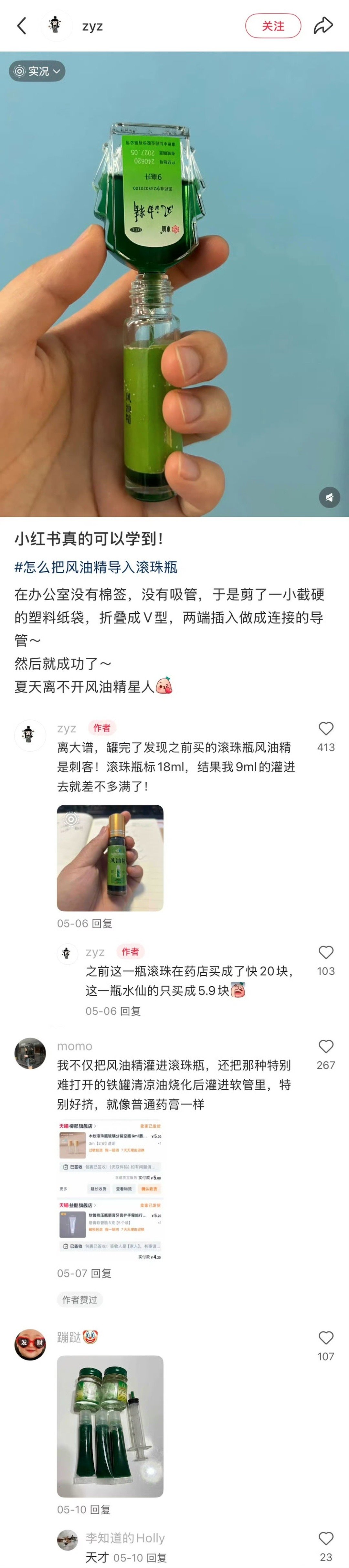 不懂,风油精为啥装滚珠瓶,几毫升的瓶子也不大,不想用手涂直接瓶子一怼就好了