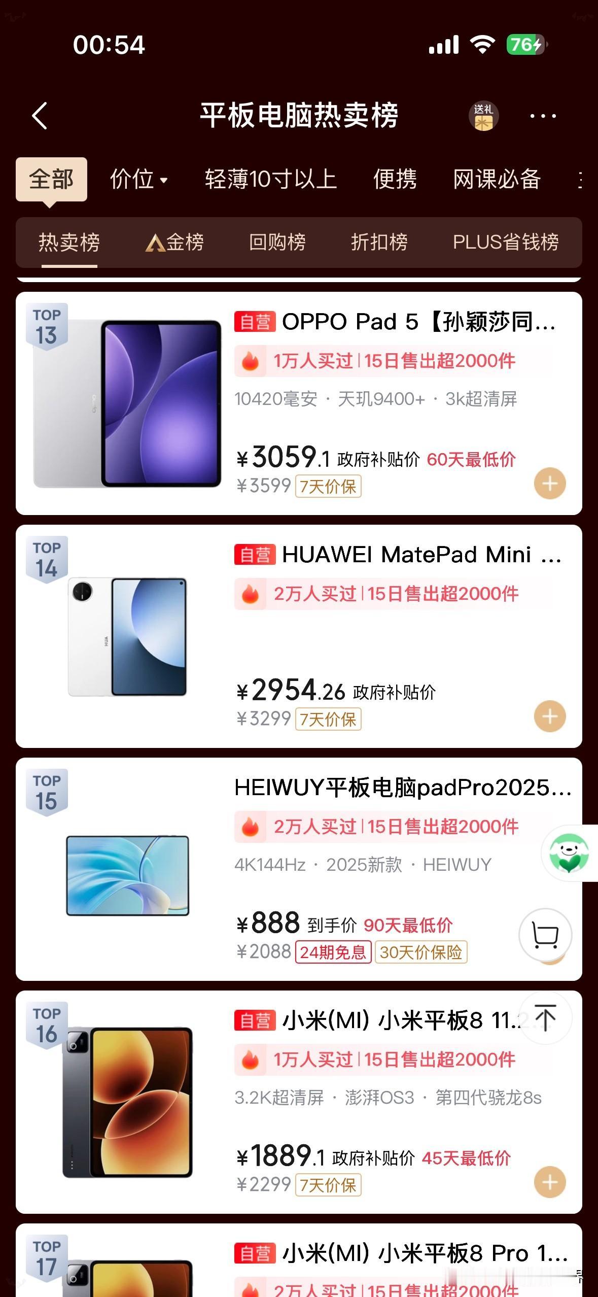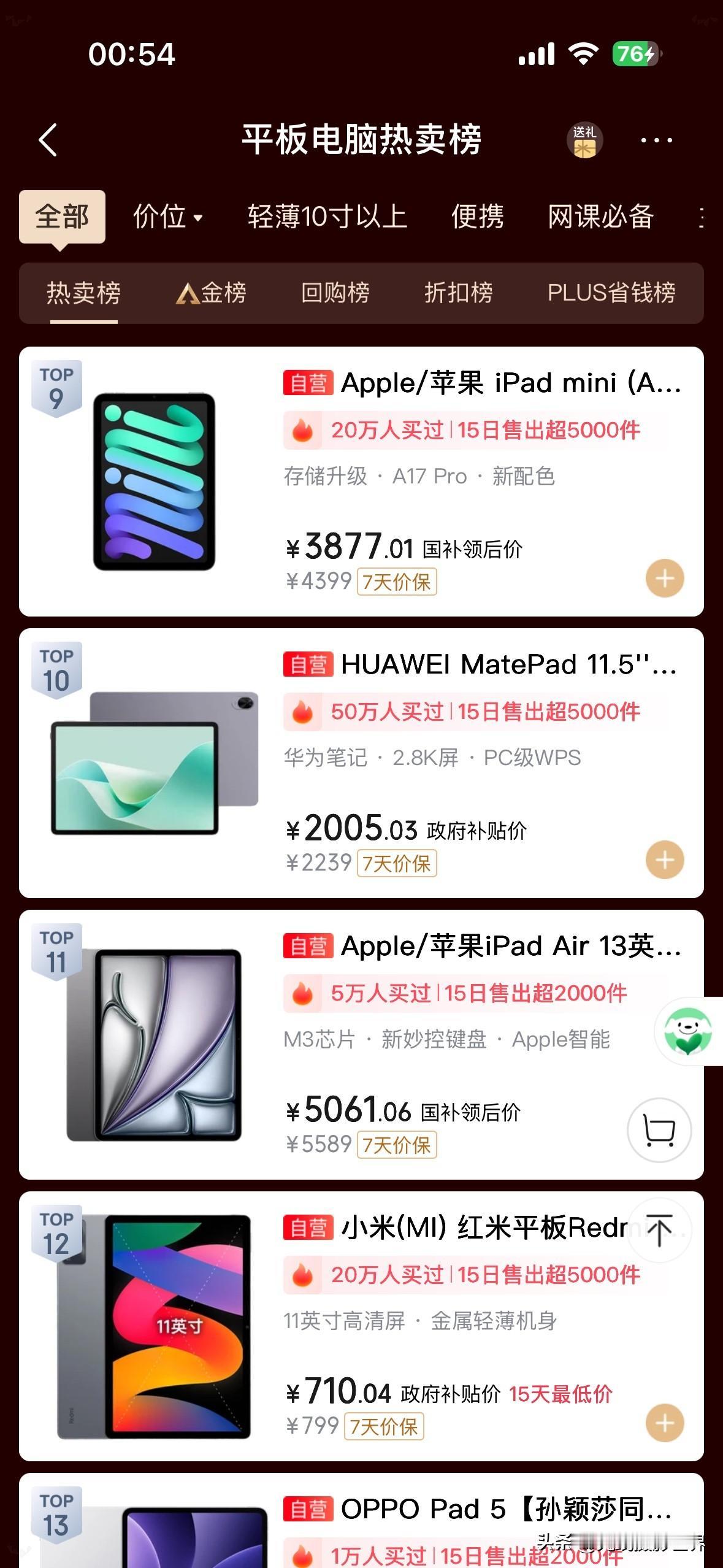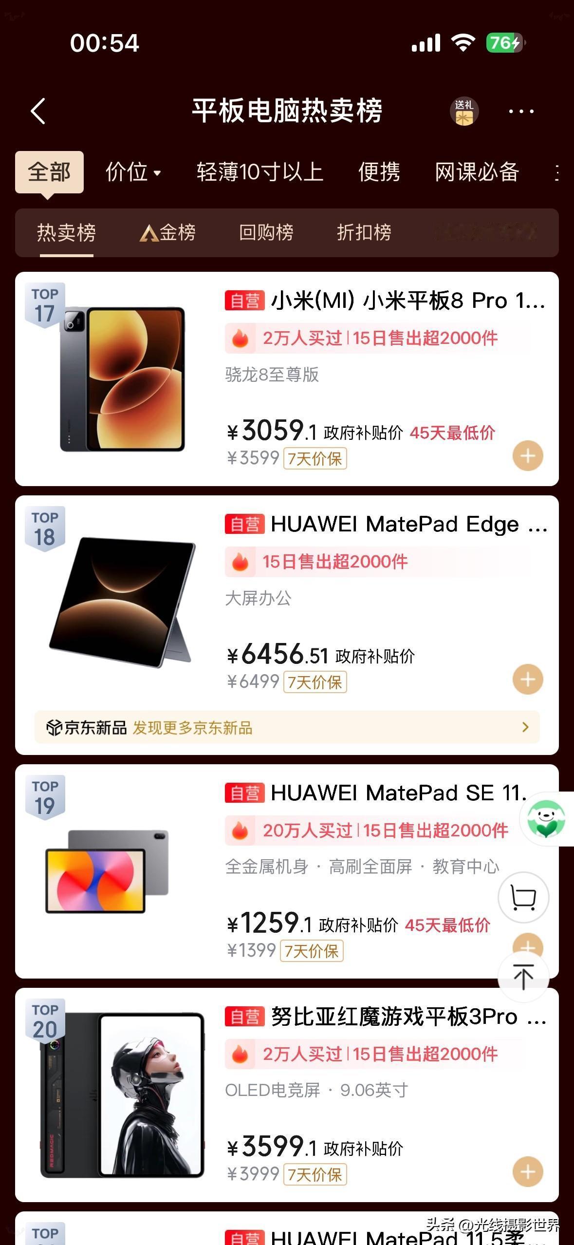 2025年双十二,平板电脑,依旧还是苹果和华为两分天下啊!小米红米,在夹缝里面生存啊!iPad air,256GB,不到4000块钱,是这个双十一和双十二的双料销量冠军……华为matepad11.5 S,256GB,不到2000块钱……最近是销量亚军…… TOP10,基本上都是苹果和华为……偶尔可以看到其他品牌…… 怎么讲呢?!对于普通人来说,随大流才是正确的选择……哎,没有办法啊! 只有聪明人,只有非常懂这个东西的……才可以不随大流啊! 大家觉得呢?! 不得不说,2025年双十二,无论手机还是平板,华为表现都非常不错,是唯一可以和苹果抗衡的国产厂商,真的是太不容易了! 华为,加油!光线摄影世界曾兰谈天说地