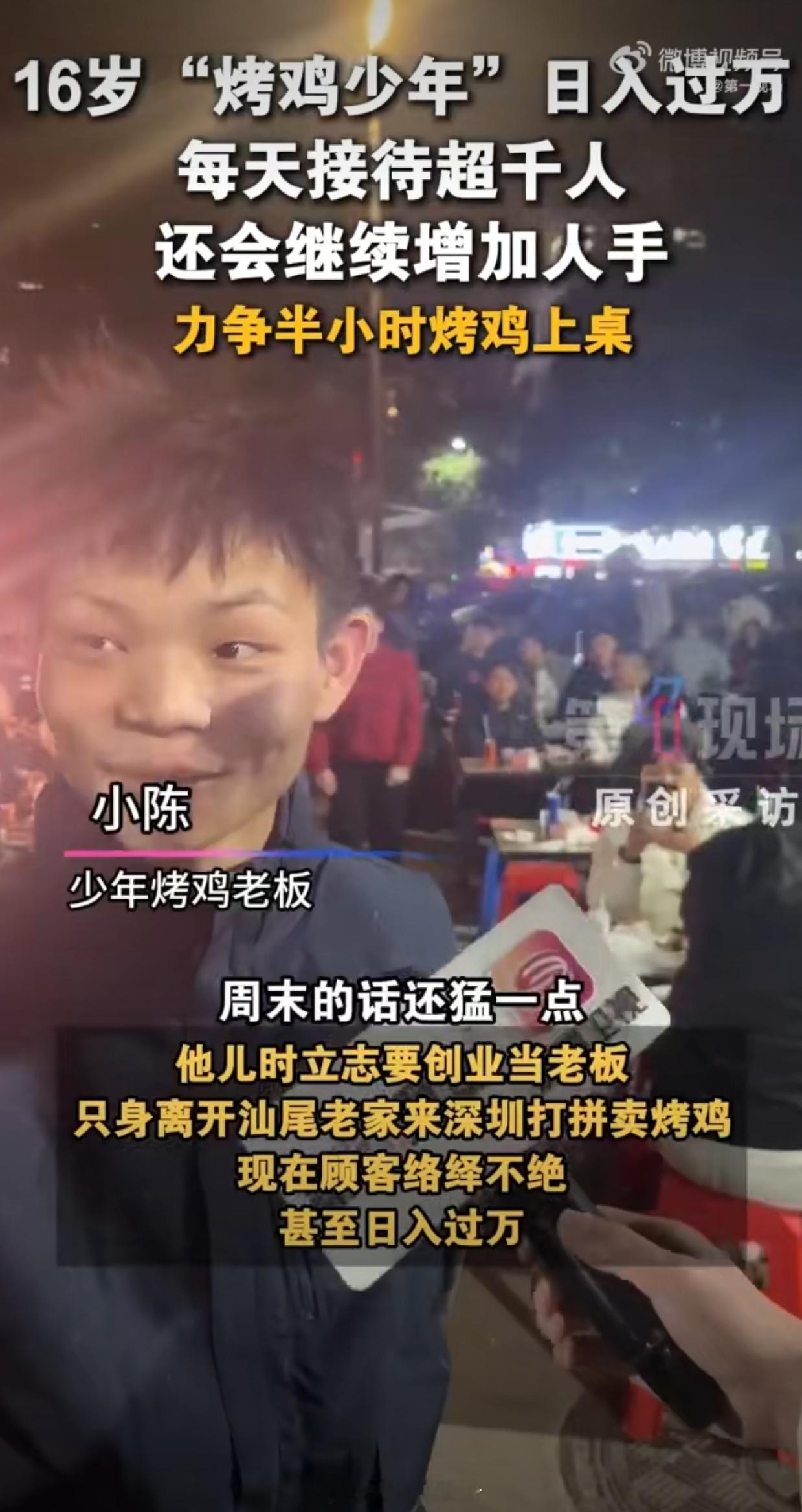 深圳16岁少年卖烤鸡日入过万刚过去一个鸡排哥现在又来一个烤鸡哥果真是三百六十行,行行出状元啊
