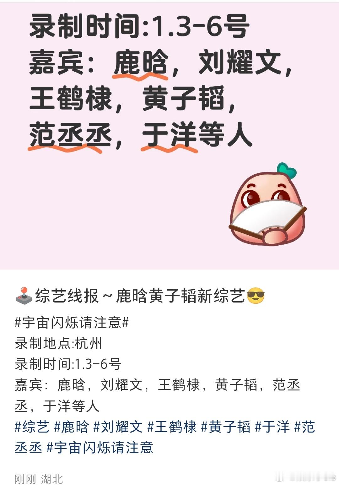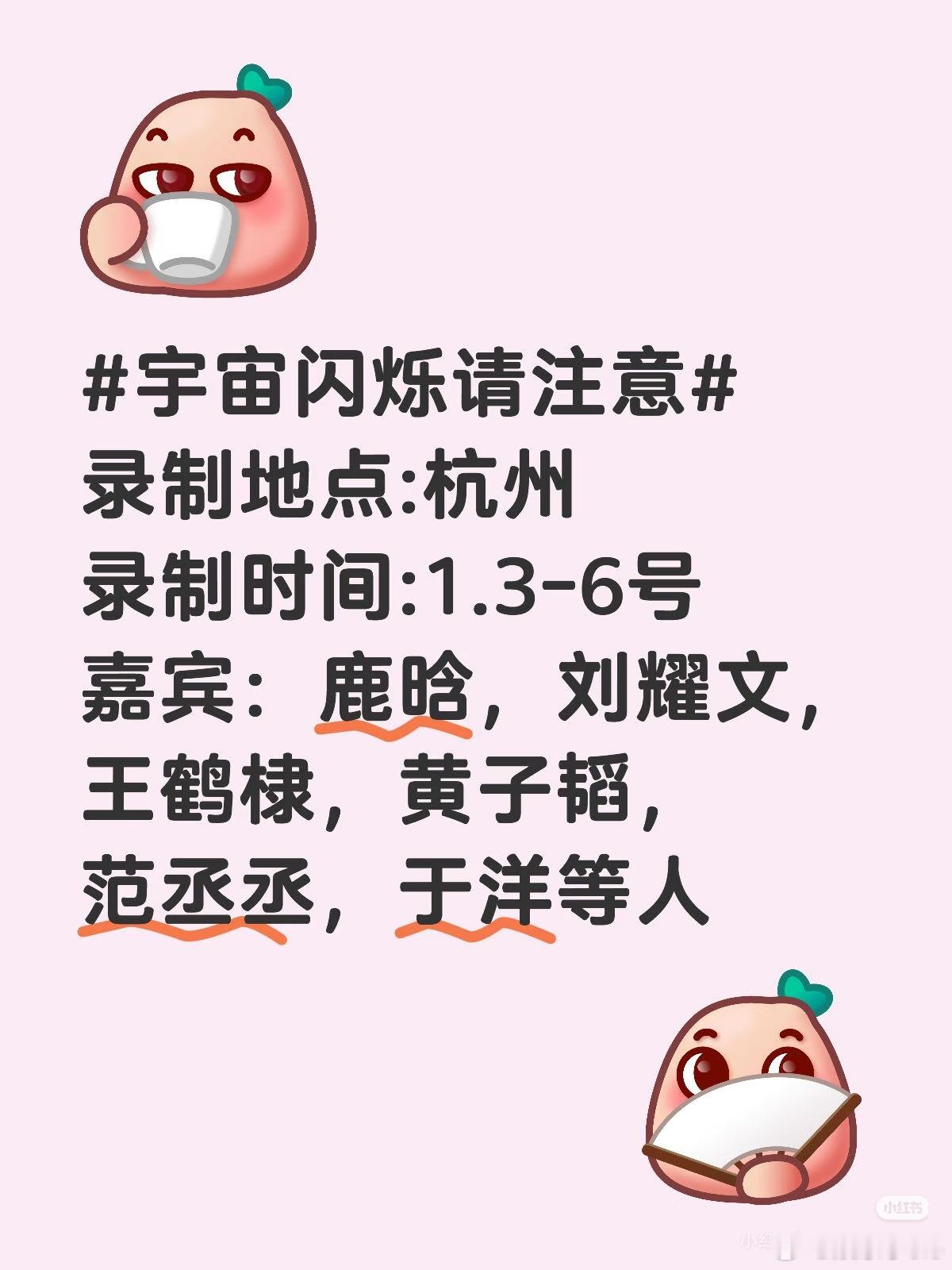 网传鹿晗和范丞丞将录制1月3号的《宇宙闪烁请注意》,黄子韬把兄弟给摇来了哈哈哈哈