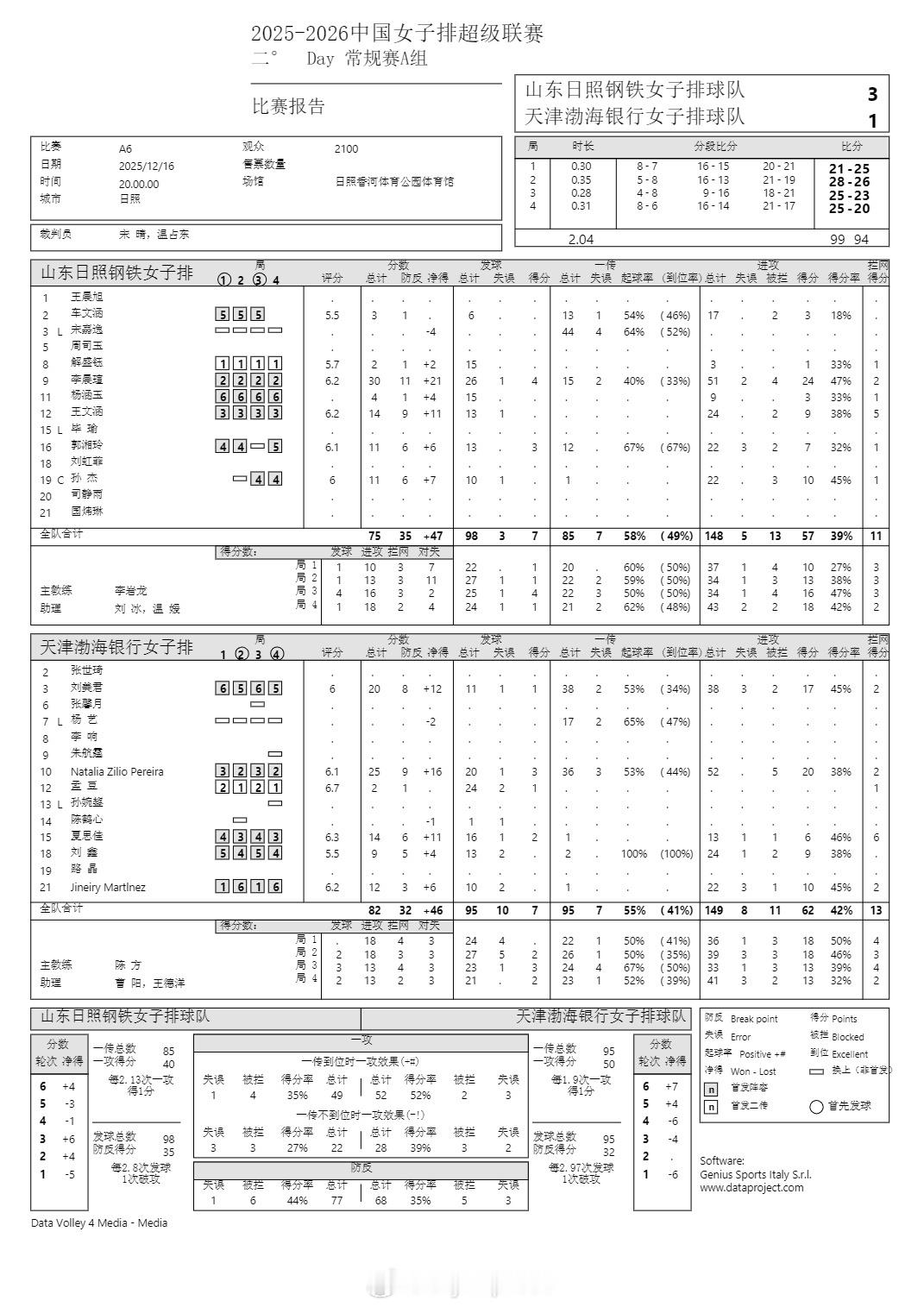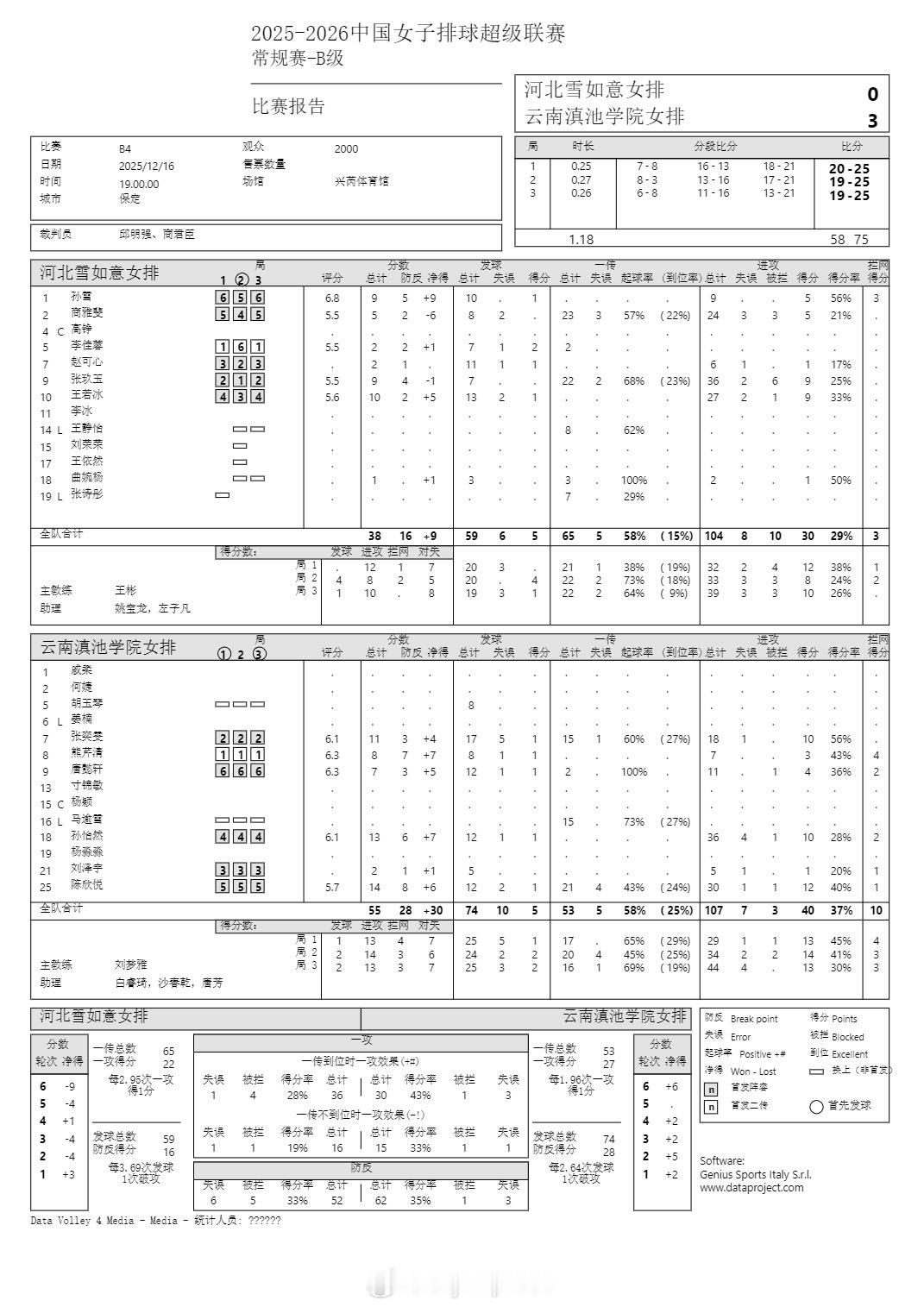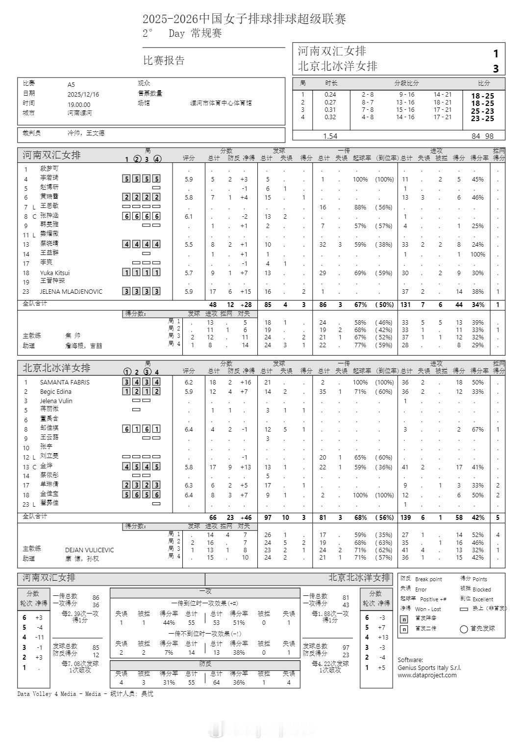 排超联赛 12月16日,女排联赛四场比赛技术统计。