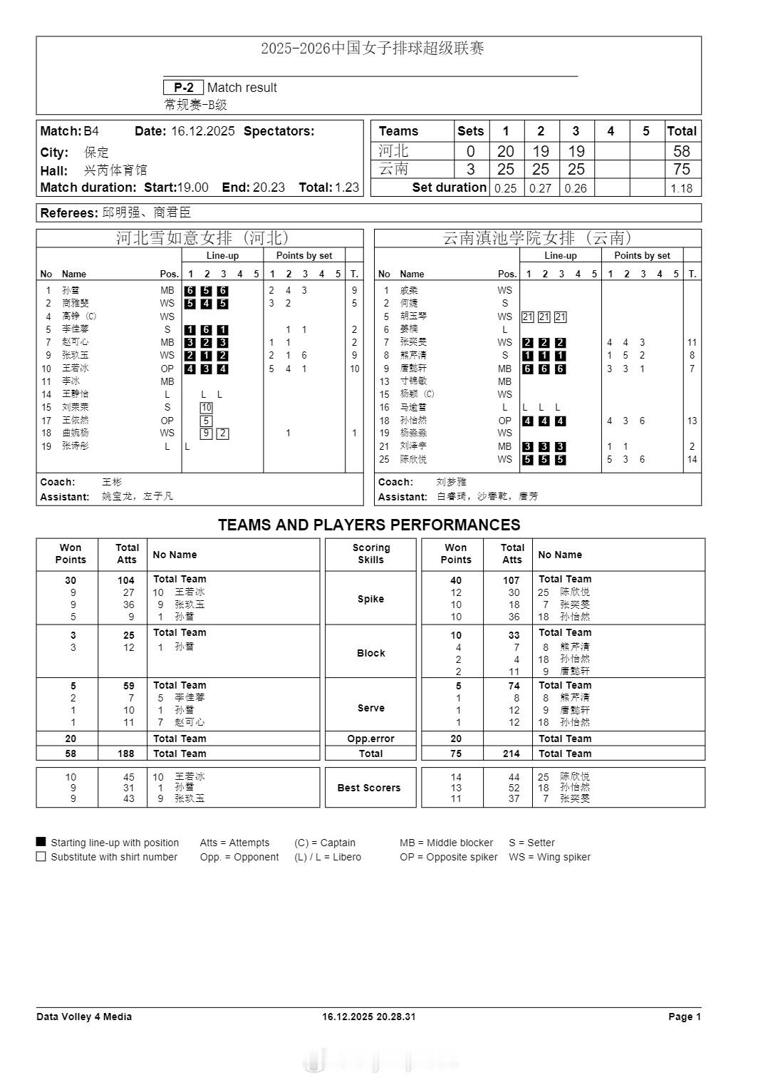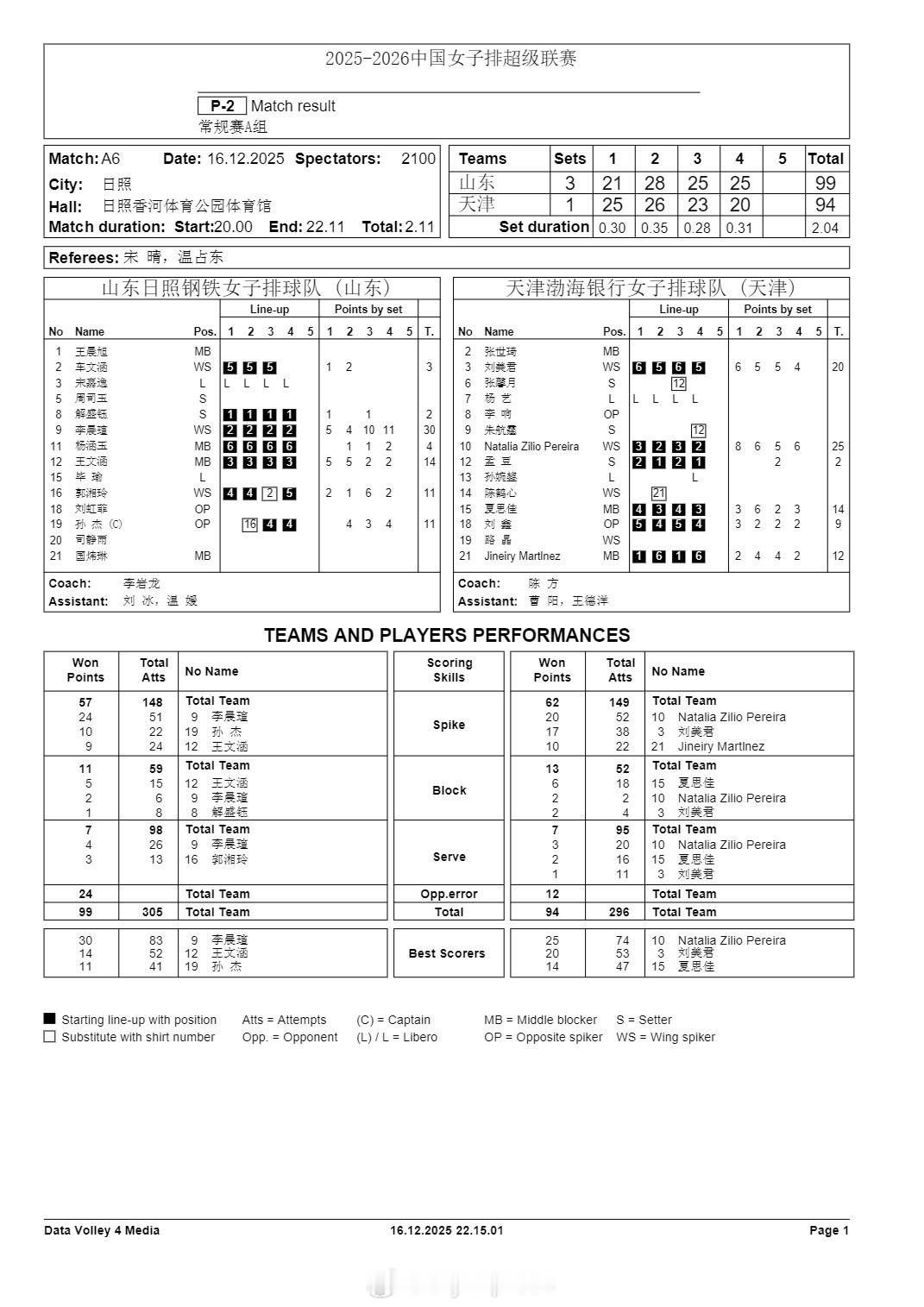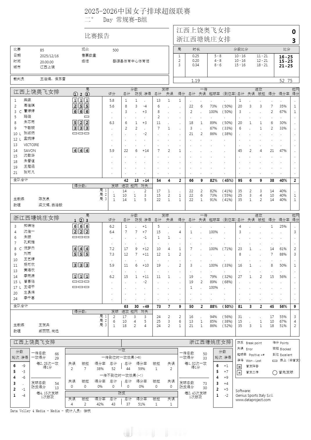 排超联赛 12月16日,女排联赛四场比赛技术统计。
