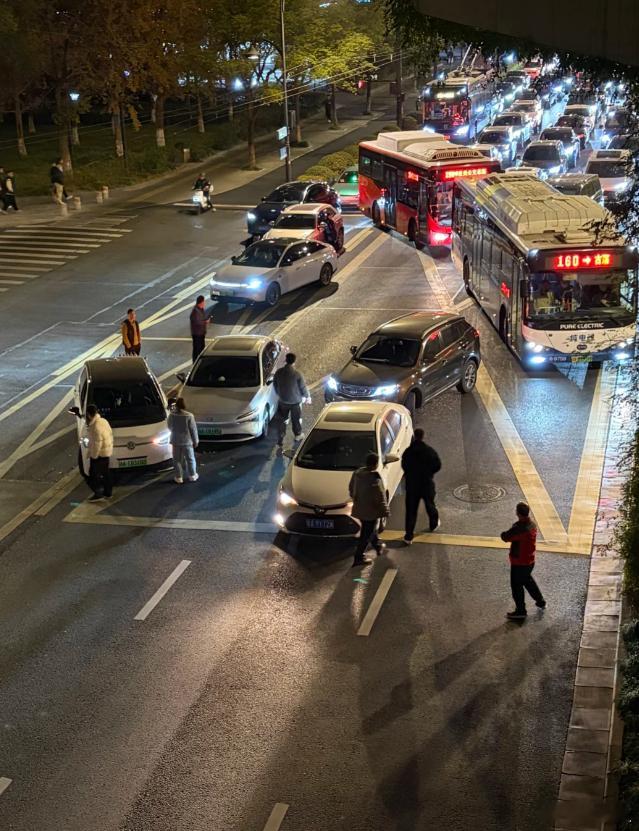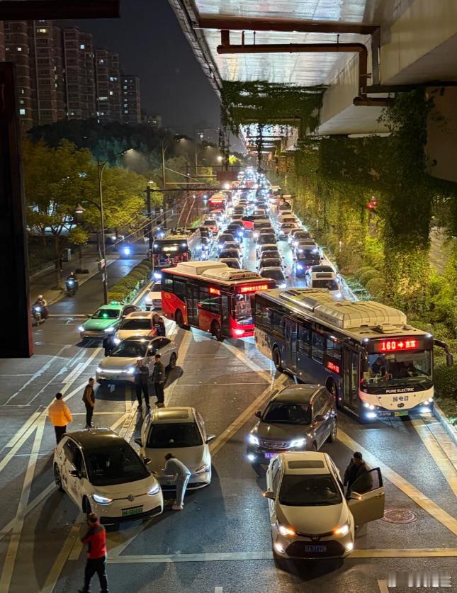 天桥上偶然碰到一场车祸导致的交通堵车。这一刻已成经典!