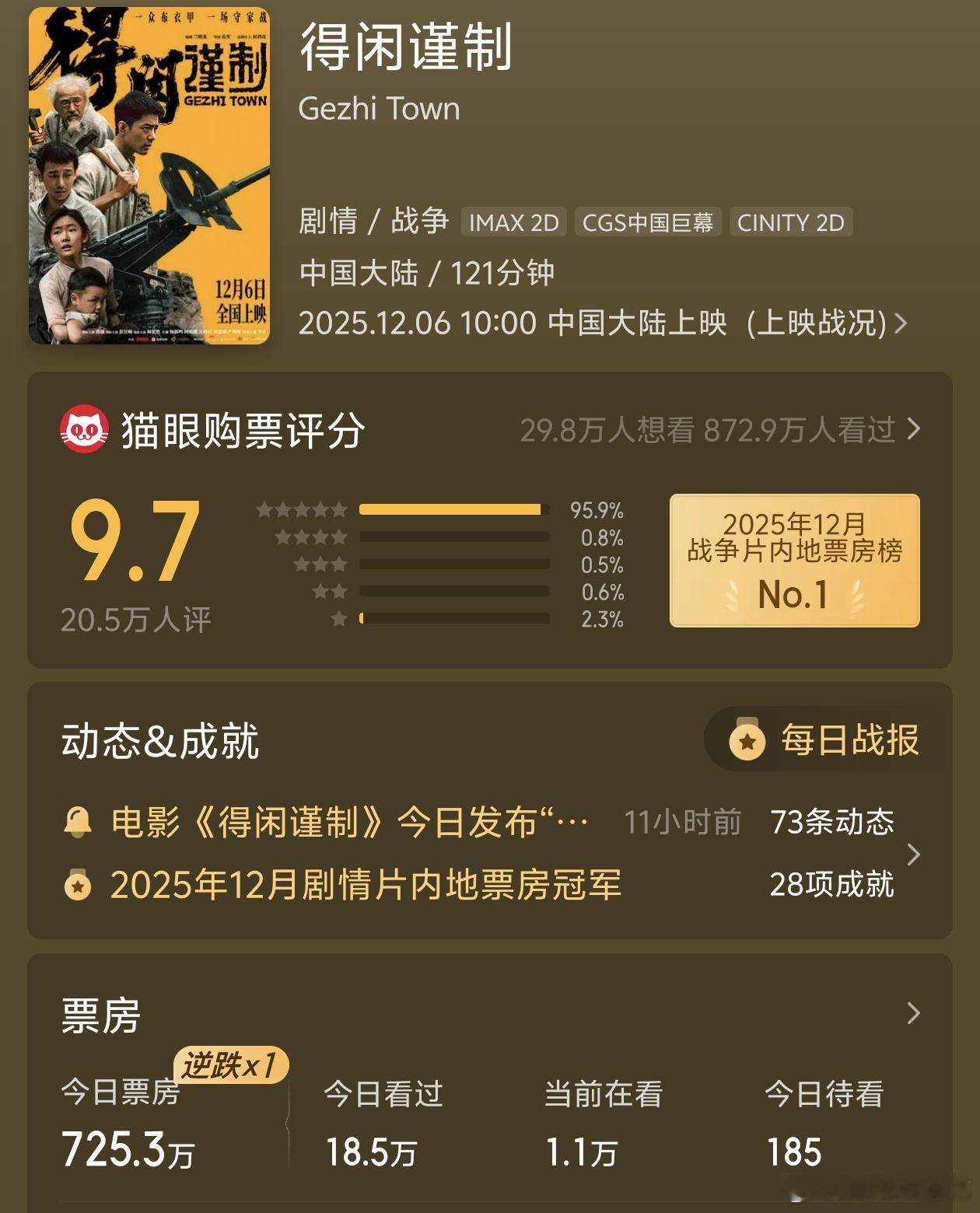 得闲谨制票房总预测连涨!工作日票房逆跌,口碑持续发酵 得闲谨制工作日票房逆跌