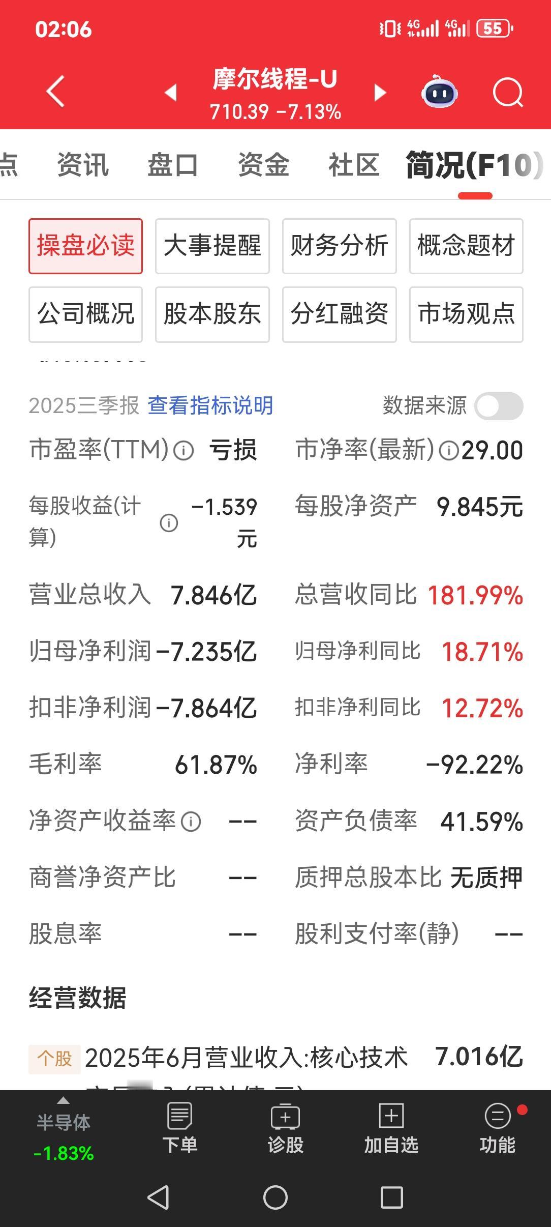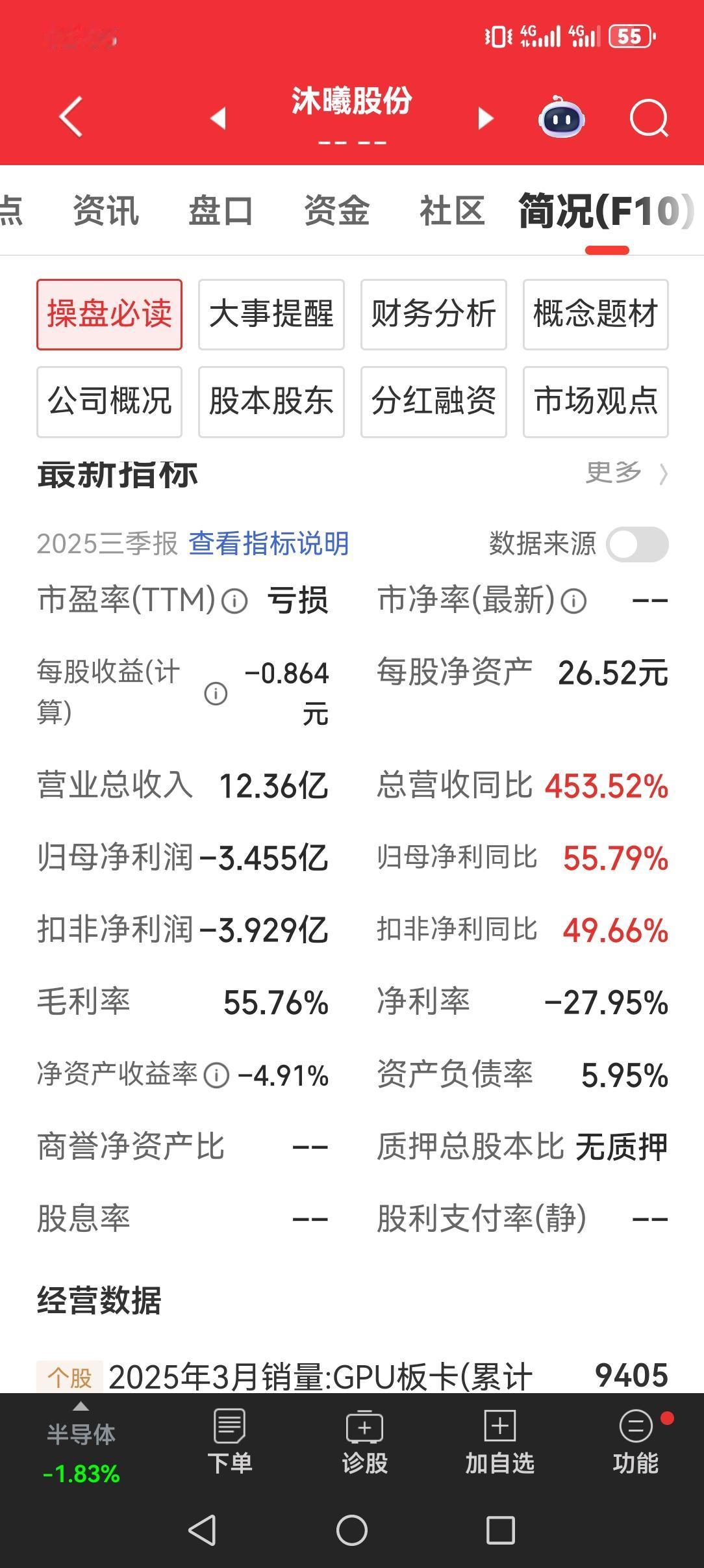 今天(17日)沐曦股份上市,静等九点二十五分开盘。 摩尔线程16号收盘价710.39元,与沐曦到底谁是哥哥?谁是弟弟?明天一决雌雄。 沐曦股份:流通股1814万,2025年三季度每股净资产26.52元,营收12.36亿元,亏损3.455亿元。 摩尔线程:流通股2938万股,2025年三季度每股净资产9.845元,营收7.846亿元,亏损7.235亿元。 他们主营业务相同,就看未来谁先扭亏为盈,这恐怕是最难判断的。